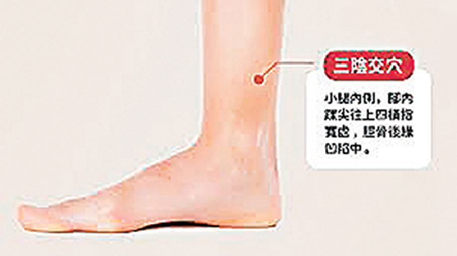 【位置】內踝尖上3寸,脛骨內側緣。