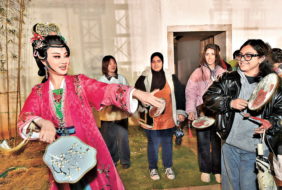 來自福州外語外貿學院的20多名留學生早前走進福州上下杭歷史文化街區,他們不僅近距離觀看了閩劇演出,還向現場表演的閩劇演員學習了戲曲的基本動作和身段,如手勢、步伐和姿態等,並在指導下嘗試模仿,最後展示所學的表演動作。這種沉浸式的互動體驗讓他們更直觀地感受到閩劇的藝術魅力和中華傳統文化的深厚底蘊。