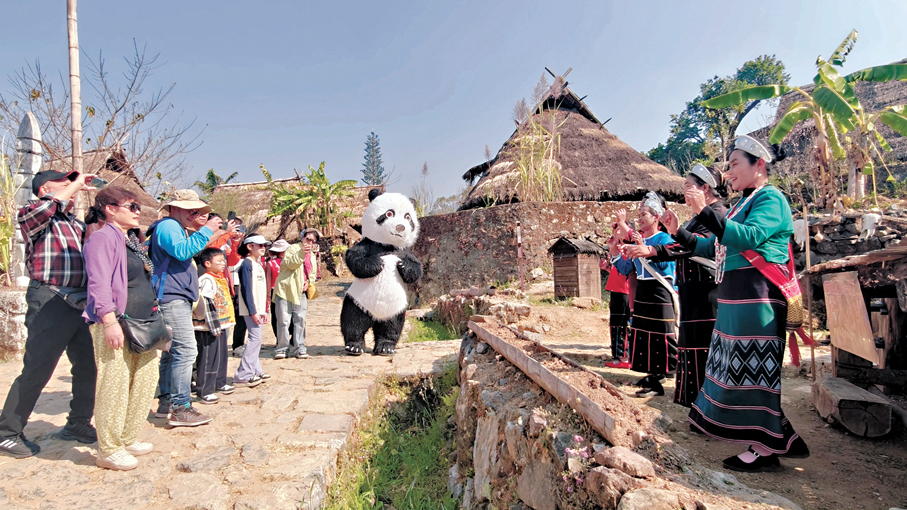 春節期間,熊貓胡胡也在現場與遊客互動,跟着電影來這裏旅遊的遊客爭相與胡胡合影,加入打跳行列,有的小朋友還在現場「復刻」電影中的情節,大人小孩都玩得不亦樂乎。在網絡社交平台上,小紅書「翁丁古寨」相關筆記發布量同比增長320%,但內容結構已從單純的「風景照」轉向「攻略+體驗+情感」的深度分享;抖音話題#熊貓計劃之部落奇遇記,播放量超5,000萬次,並有大量用戶自發創作「跟着電影遊臨滄」的二創內容。