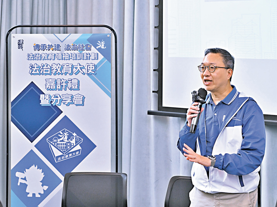 香港文匯報訊(記者 黃子晉)律政司昨日舉行法治教育領袖培訓計劃法治教育大使嘉許禮暨分享會,40名完成培訓的學員正式成為首批法治教育大使。律政司司長林定國致開幕辭時表示,今次是法治教育領袖培訓計劃的重要里程碑,因為要維持香港的良好法治環境,關鍵是培養市民大眾的法治意識及加強他們對香港普通法制度的基本理解。他寄語法治教育大使將在培訓計劃獲得的知識和經驗,按照各自的職業和擔當的崗位,以合適的方法傳授他人,成為香港推廣法治的「精兵」。