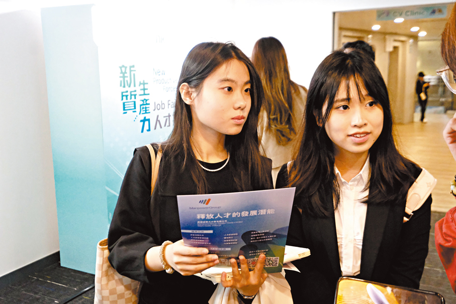 兩名來自內地並就讀於香港都會大學會計專業二年級的學生Renie和Ashley,昨滿懷憧憬地遞交簡歷,尋覓實習機會,其中Renie表示,對多數大二學生而言,校園生活或許還在適應期,但她下定決心要提前累積實戰經驗,而是次招聘會不僅匯聚海量的優質職位,更能與企業代表直接對話,並獲得職業支援,對規劃職業發展道路提供重要指引。
