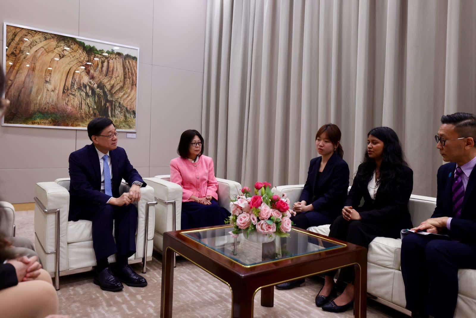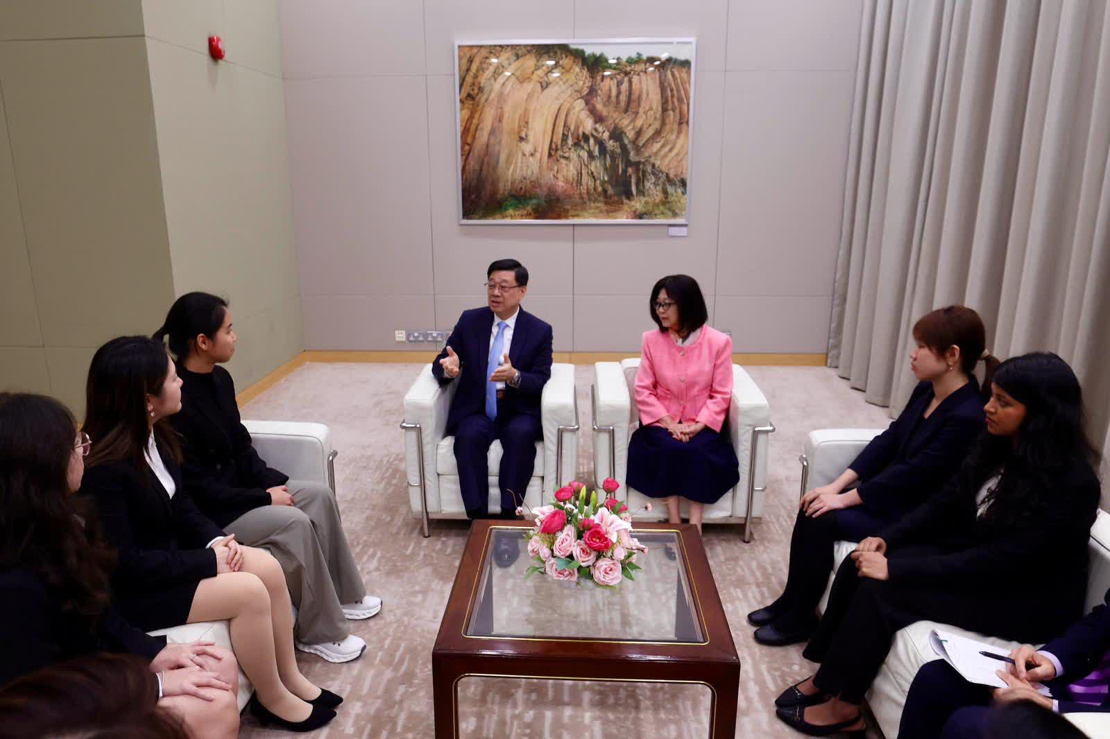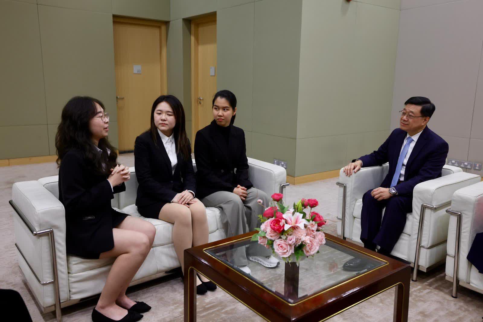 香港文匯報訊(記者 蕭景源)今天是國際婦女節,行政長官李家超在出席2026年國際婦女節酒會前,偕同太太與數名「『友』妳啟導」友師計劃學員會面。她們來自多所院校、就讀不同學科,當中既有本地同學,亦有來自內地來港升學及印度裔的同學。李家超細聽她們分享參加計劃後的經驗與得著,對她們紛紛表示獲益良多感到鼓舞。他期望她們繼續透過參與計劃得到啟蒙,並寄語學員要找到自己的理想及抱負,祝願她們發展一切順利。李家超熱切期待日後看到各位學員的成功故事,成為社會未來的棟樑,在香港不同領域發光發亮。
