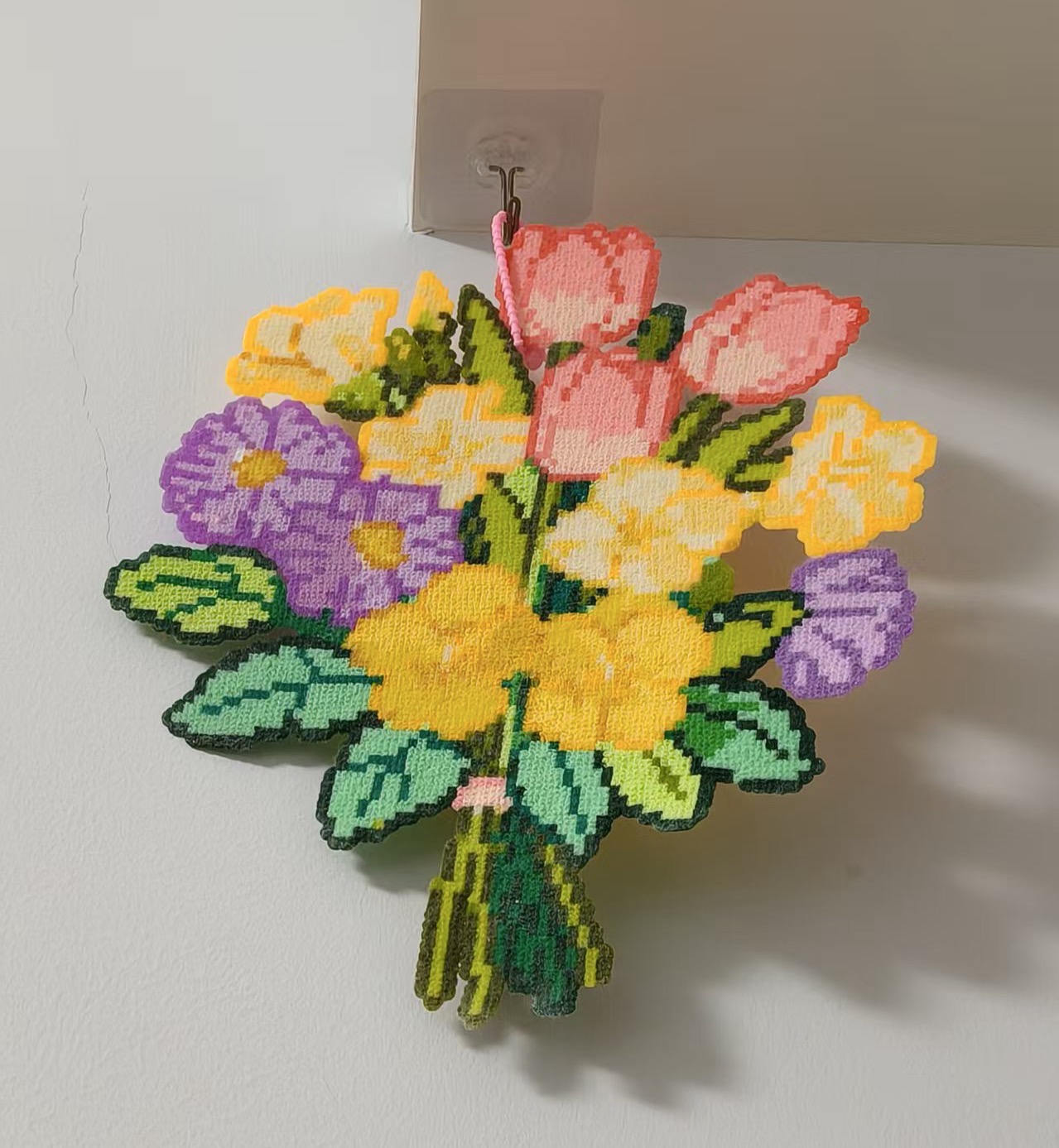 指尖輕捻,一顆不足五毫米的粉色塑料小珠被精準地按壓在六邊形底板上。她正在拚的是一束花——送給自己的三八節禮物。