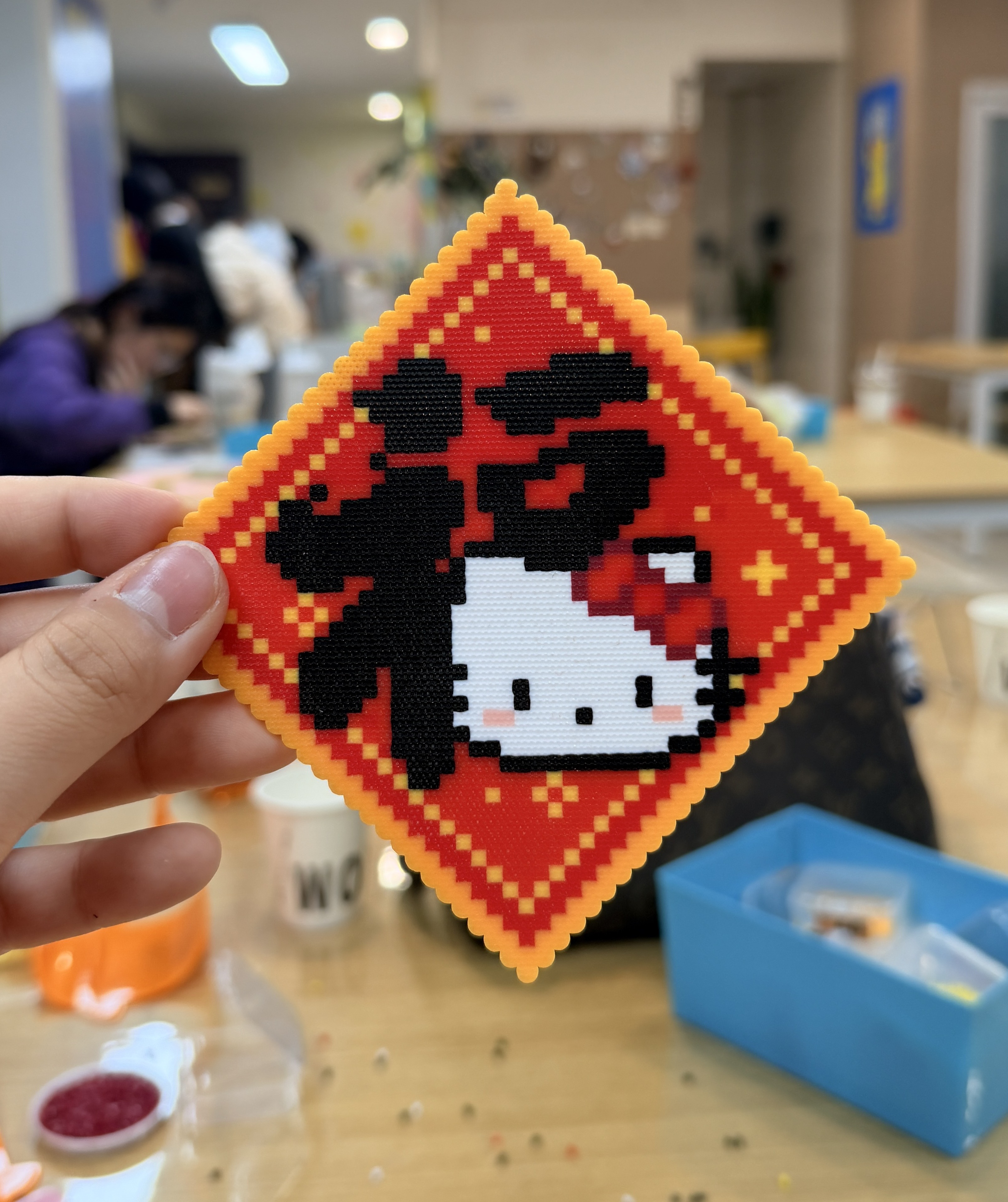 「以前過節都是等着收禮物,現在更喜歡自己動手做點什麼。」她笑着向記者展示半成品,「你看,幾千顆豆子,一顆一顆拚出來,每一顆都算數。」