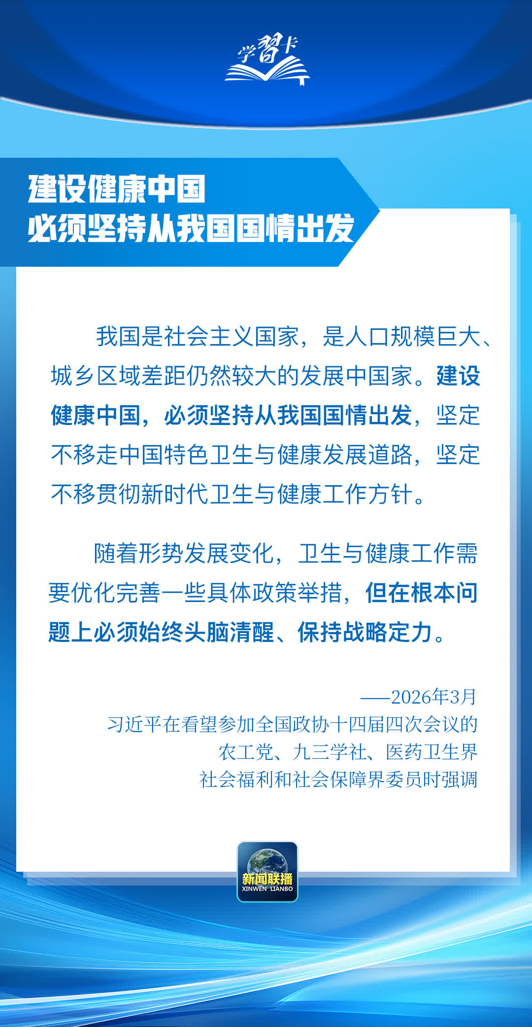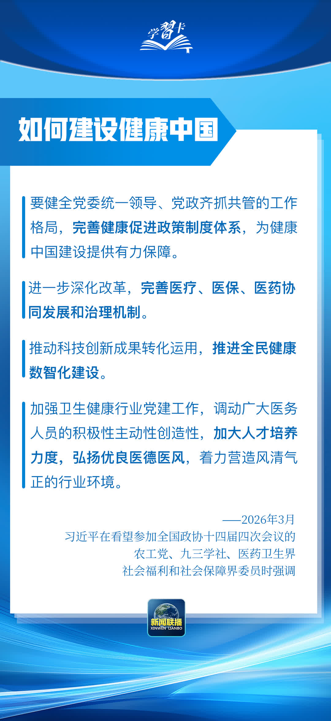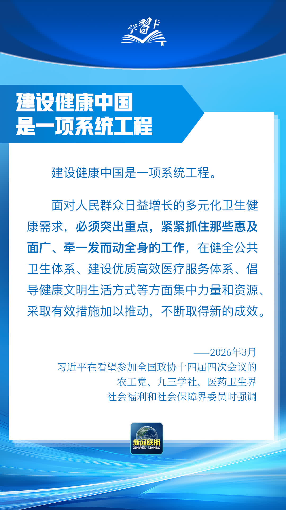 總書記在重要講話中強調,堅定不移走中國特色衞生與健康發展道路,推動「十五五」時期健康中國建設取得決定性進展。