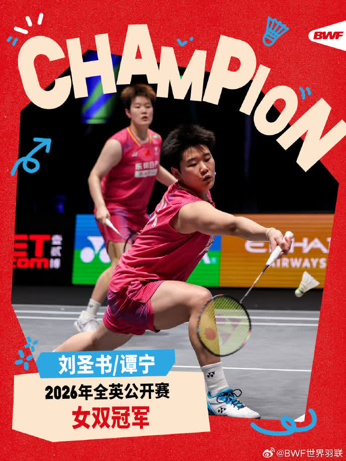 據世界羽聯消息,北京時間3月8日,全英羽毛球公開賽女雙決賽,賽會頭號種子劉聖書/譚寧2-0(21-18、21-12)戰勝韓國組合白荷娜/李紹希,奪得羽毛球全英公開賽冠軍。