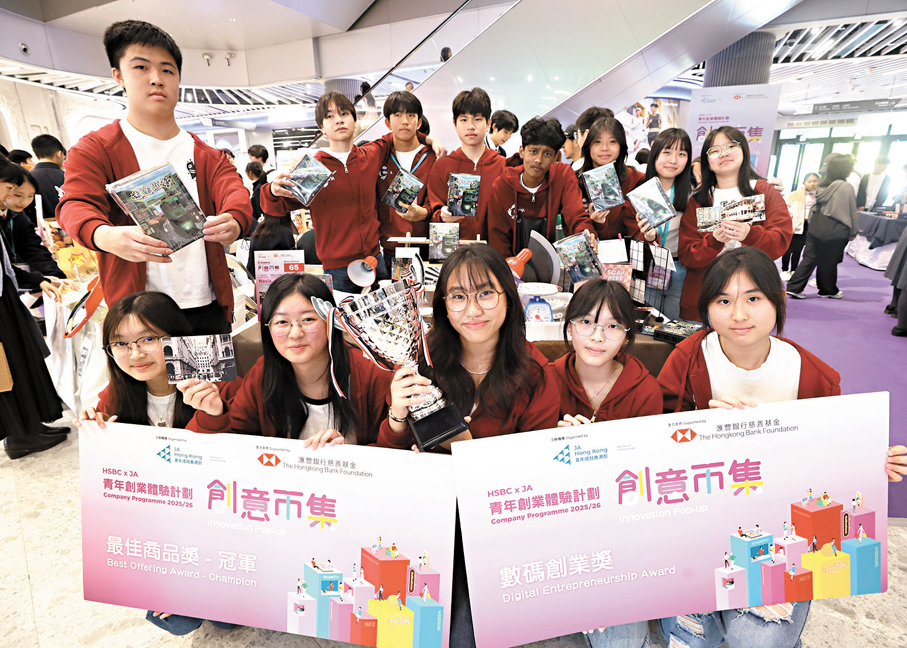 香港文匯報訊(記者 李芷珊)由滙豐銀行慈善基金全力支持、青年成就香港部主辦的HSBC×JA青年創業體驗計劃「創意市集」,上周六(7日)起一年兩天在啟德零售館舉行,今年「創意市集」規模再創新高,吸引近90間中學超過2,100名14歲至18歲的中學生參與,他們組成84間學生營運公司,由構思、設計、製作到銷售,一手包辦首次創業旅程,在市集中展示一系列極具創意的產品,充分展現Z世代對香港文化、環境可持續發展、社會意識及科技元素的關注與見解。同時,他們在過程中展現出卓越的商業觸覺與創業精神,將創意思維轉化為具備市場潛力的產品。
