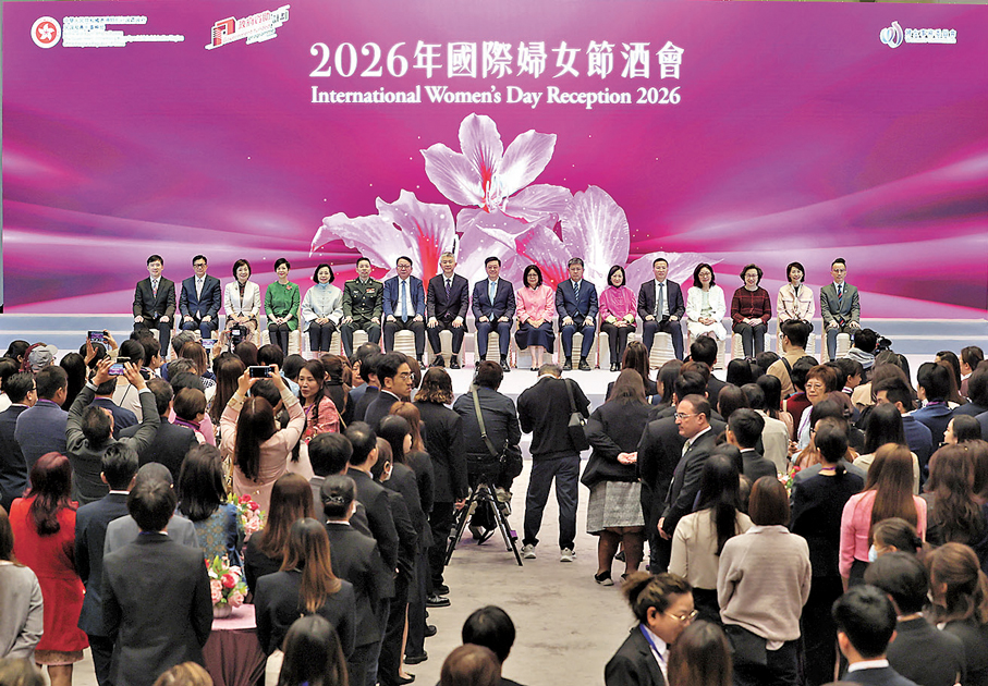 昨日是國際婦女節,特區政府民政及青年事務局和婦女事務委員會於政府總部舉行「2026年國際婦女節酒會」,香港特區行政長官李家超在酒會上致辭時指出,女性佔全港人口54%,形容是「撐起大半邊天」;特區政府15個政策局當中,有7位是女局長,加上特首辦主任即半數共8人是女性,為歷屆管治班子中比例最高。政府亦透過增強婦女能力等以促進婦女的福祉和權益,以及持續推動婦女的事業發展,而本月31日舉辦的第二屆「香港家庭暨婦女發展高峰會」,就社會關注的家庭和婦女發展議題交換意見,共同推動婦女事業邁步向前。