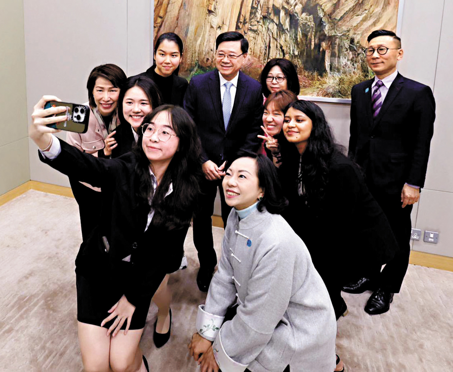 他指出,香港女性佔全港總人口約54%,是社會人口的大多數,並是香港發展的重要力量,既是家庭溫暖的守護者,也是社會進步的推動者,在各個領域都閃耀着光彩,如職場上愈來愈多上市公司有女性董事,企業領導層女性參與度持續上升,律師和會計師等專業界別逾半數也為女性,而在政府15個政策局中有7位是女局長,加上特首辦主任即半數共8人是女性,為歷屆管治班子中比例最高;文職公務員中,女性佔比49%,首長級文職人員女性佔比亦超過四成半,數據見證政府多年推動平等機會的成果,彰顯「巾幗力量」對香港的貢獻。