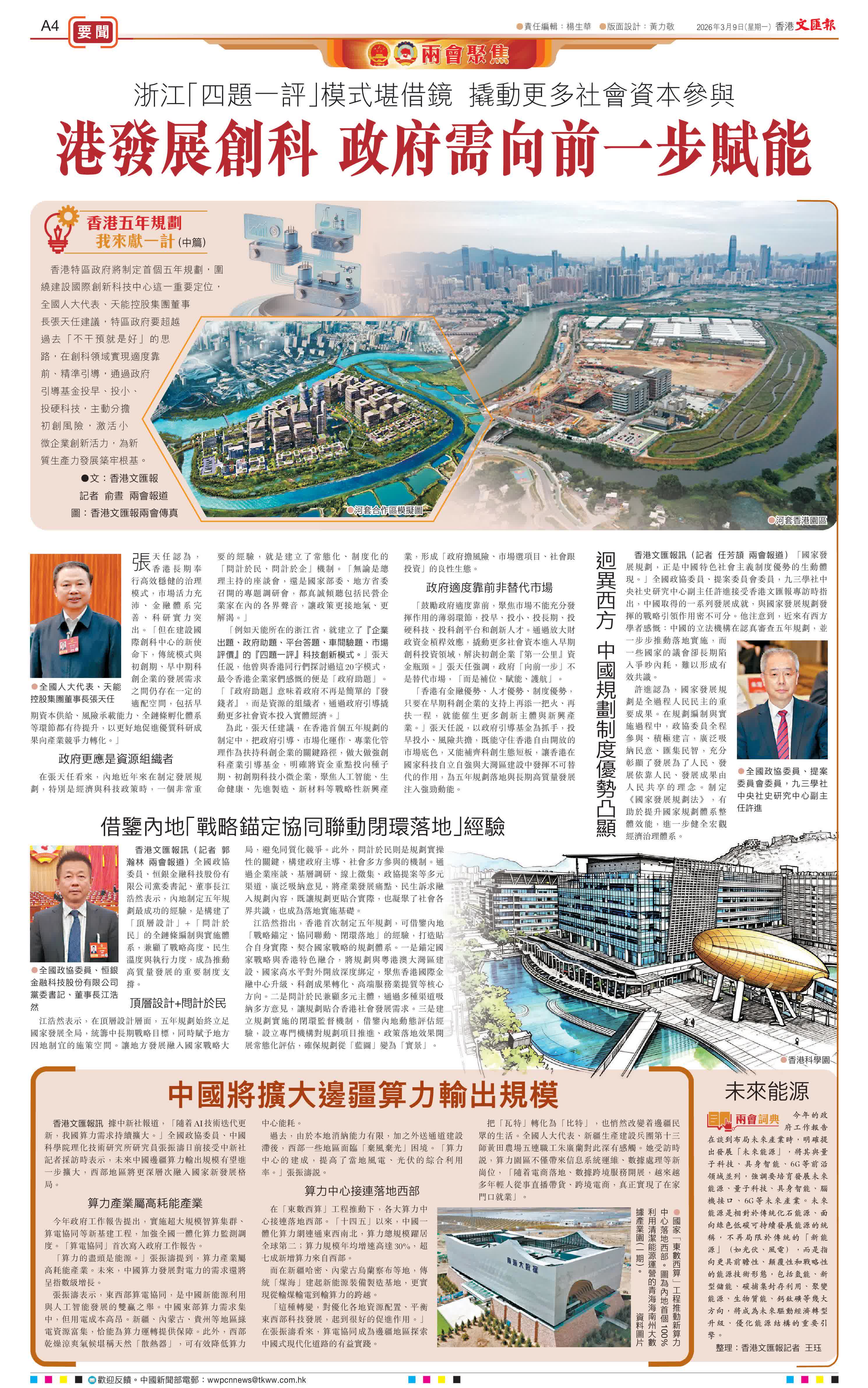 「香港有金融優勢、人才優勢、制度優勢,只要在早期科創企業的支持上再添一把火、再扶一程,就能催生更多創新主體與新興產業。」張天任說,以政府引導基金為抓手,投早投小、風險共擔,既能守住香港自由開放的市場底色,又能補齊科創生態短板,讓香港在國家科技自立自強與大灣區建設中發揮不可替代的作用,為五年規劃落地與長期高質量發展注入強勁動能。