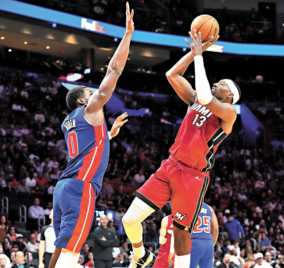 香港文匯報訊(記者 楊浩然)NBA昨日舉行多場常規賽,其中熱火主場以121:110擊敗東岸「一哥」活塞之餘,陣中主力艾迪拜約更突破一萬分里程碑。