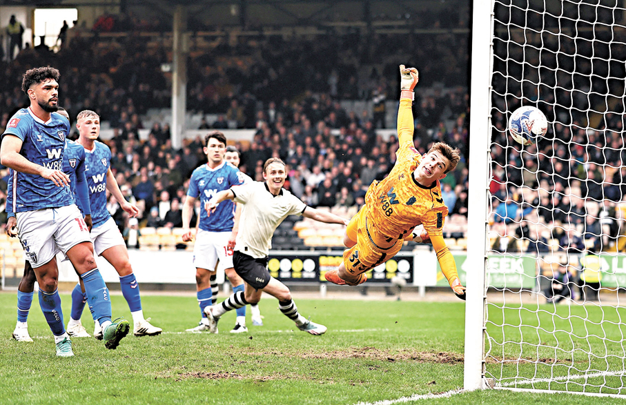 香港文匯報訊(記者 張發兒)英國時間周日的足總盃出現爆冷賽果,英甲球隊維爾港憑賓韋尼上半場頭鎚得手,以1:0擊敗新特蘭,自1954年後再打入英足盃八強。值得一提的是,此子在今屆英足盃已第三次攻入致勝球。另一場16強賽事,英冠球隊修咸頓則以1:0絕殺富咸。