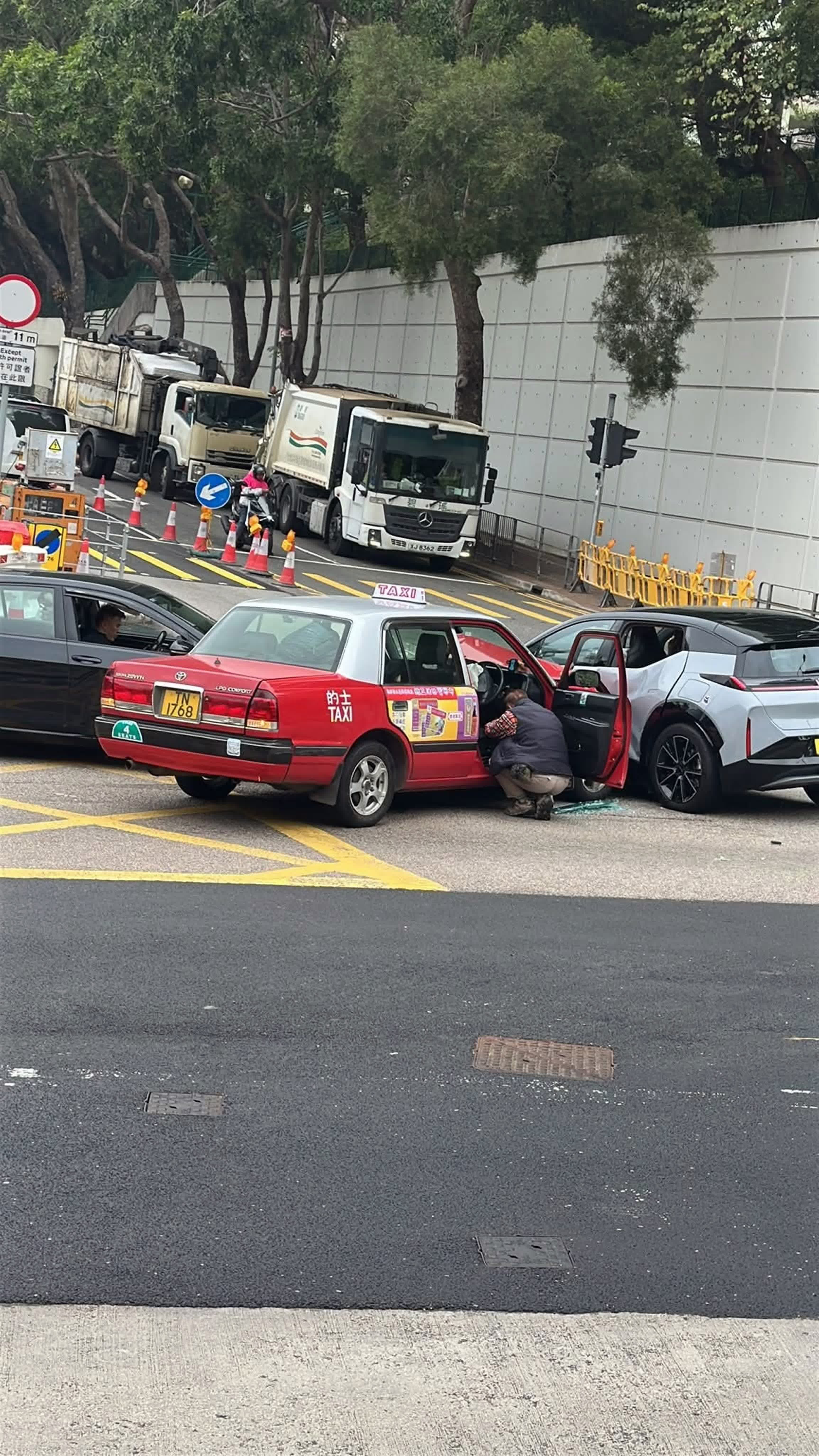 香港文匯報訊(記者 蕭景源)今日(10日)上午11時35分,一輛的士和兩輛私家車在葵涌和宜合道與梨樹路交界路中相撞,當中兩名男司機受傷送院,幸傷勢不算嚴重。