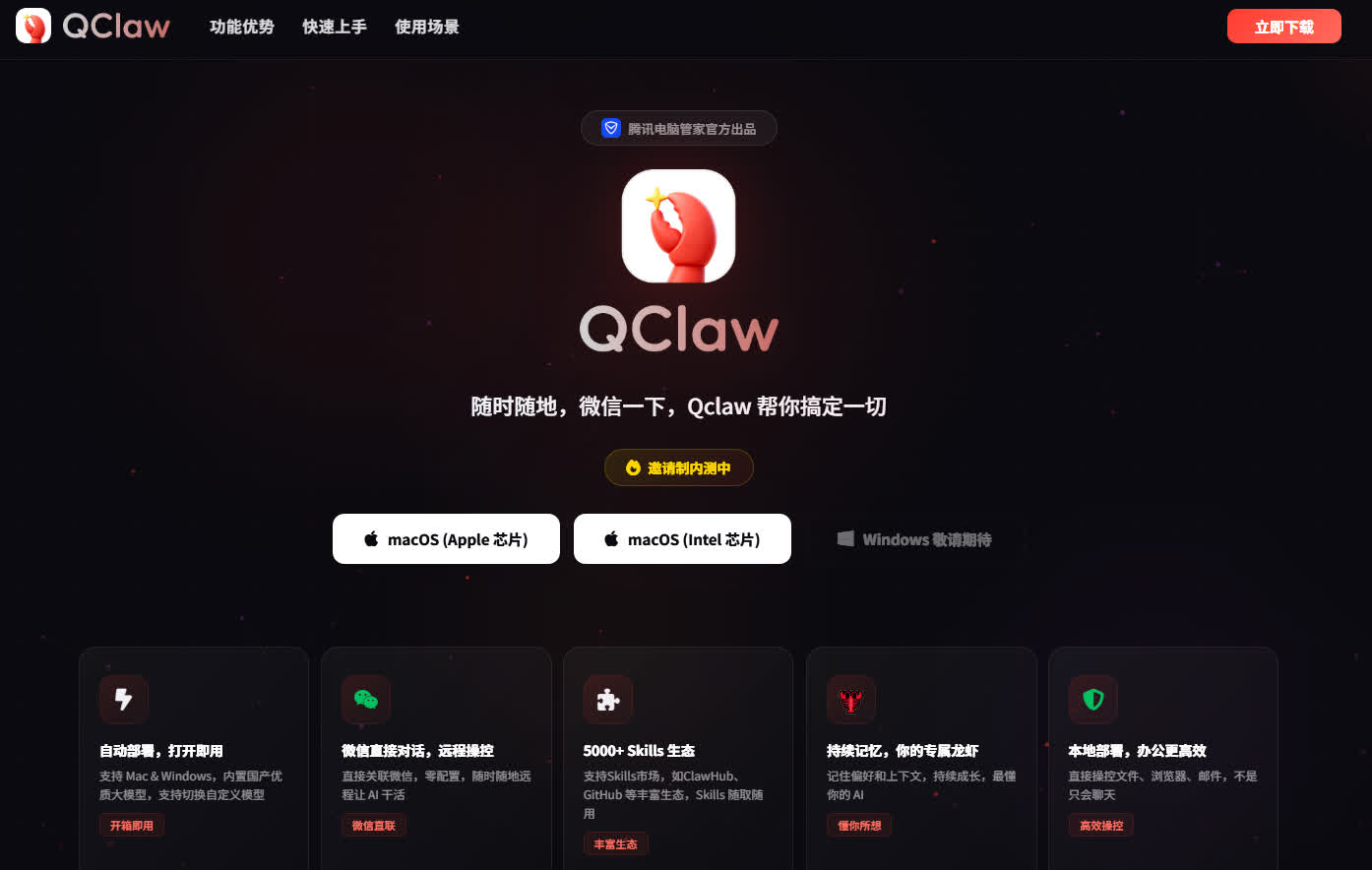 香港文匯網訊 3月10日,騰訊宣布QClaw正處於內測中。