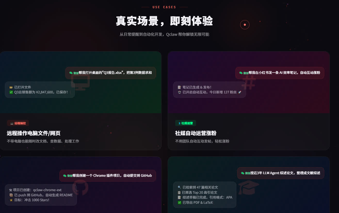 據界面新聞報道,騰訊方面介紹,QClaw是基於OpenClaw推出的本地AI助手,支持Windows/Mac一鍵安裝,可通過微信對話,遠程操控。用戶只需在手機微信上發句指令(如:「幫我把桌面報表求和並傳給我」),助理即可自動操作電腦執行並回傳。