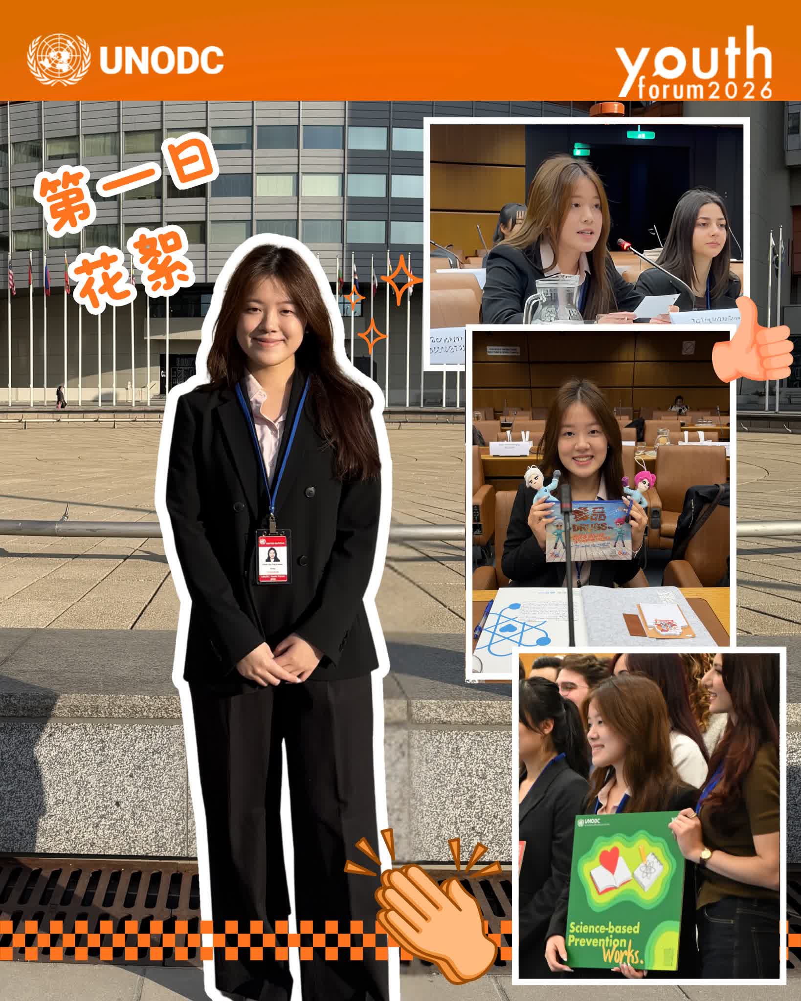 保安局青少年制服團隊領袖論壇成員、香港大學生Andrea,經過重重嚴格遴選,獲國家推薦參加於維也納舉行的「聯合國毒品和犯罪問題辦公室(United Nations Office on Drugs and Crime (UNODC))青年論壇」。論壇在3月9日至11日舉行,今日她在青年論壇開幕禮致辭。