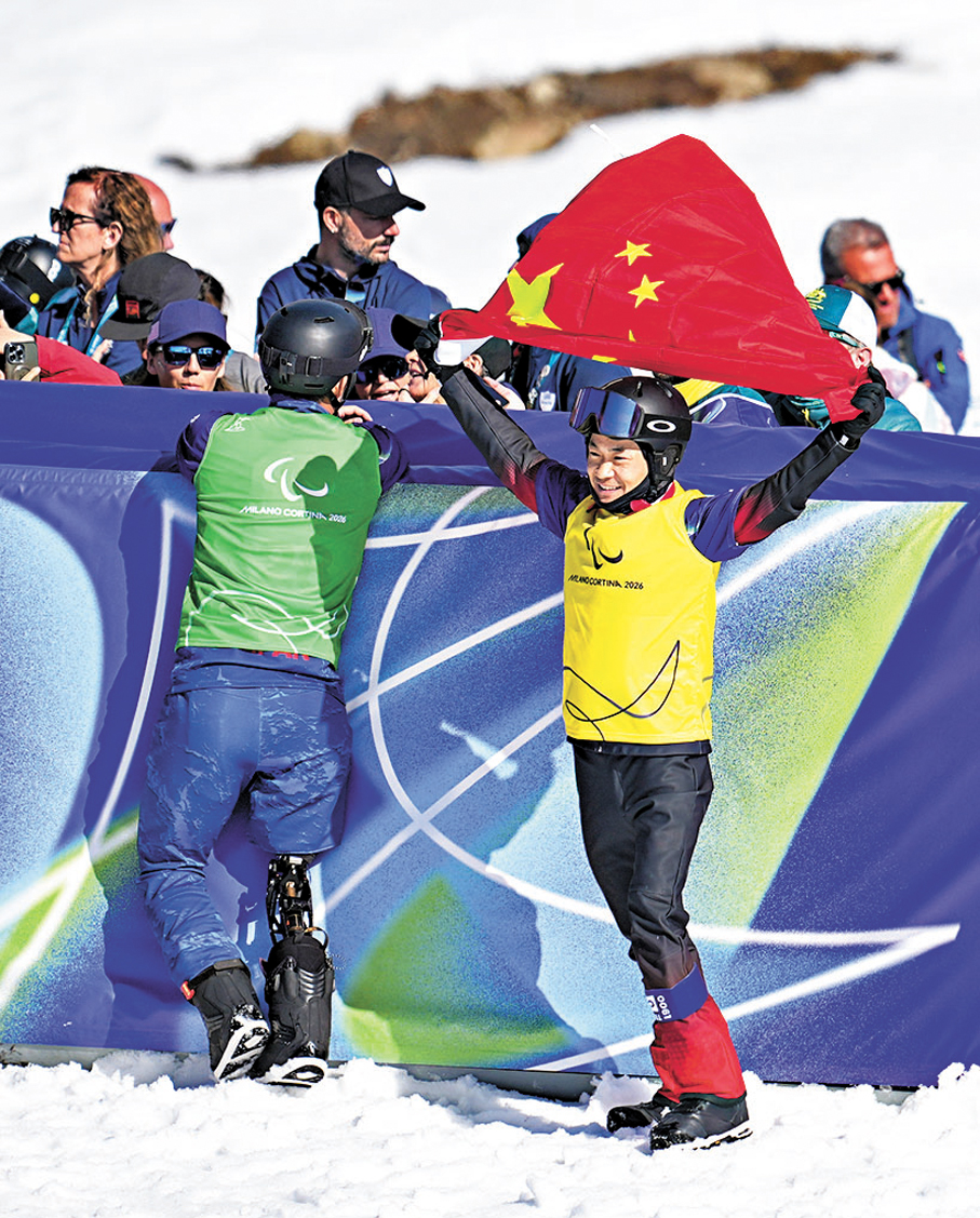 香港文匯報訊 綜合新華社報道,在意大利時間8日的米蘭冬殘奧會,中國選手武中偉於單板滑雪男子障礙追逐LL1級項目的頒獎儀式後舉起手機,以環繞賽場的山峰為背景,給手中的金牌和吉祥物拍了一張照。儘管自己並未入鏡,但整個採訪區都能看得見他臉上的微笑。這一刻,既是他多年堅持的回報,也是中國殘奧單板滑雪的突破。