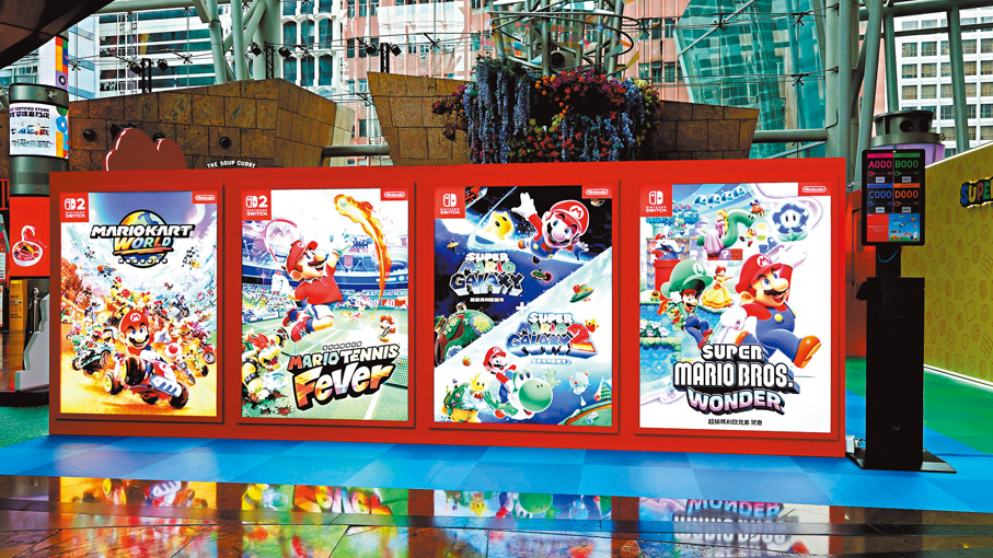 商場4樓通天廣場及12樓Live Stage化身為瑪利歐的奇妙世界,帶來多款Switch 2遊戲試玩,包括《瑪利歐賽車世界》、《瑪利歐網球狂熱》、《超級瑪利歐銀河+銀河2》及《超級瑪利歐兄弟驚奇》。完成試玩即可獲得精美貼紙,並可額外體驗「Nintendo GameCube–Nintendo Classics」或「Super Famicom Nintendo Classics」。場內亦設有瑪利歐主題拍照區,包括經典水管及超級瑪利歐兄弟場景,歡迎粉絲打卡。此外,大會將於指定時間舉行角色見面會,粉絲可一次過集齊瑪利歐、路易吉、碧姬及耀西,近距離互動合照。