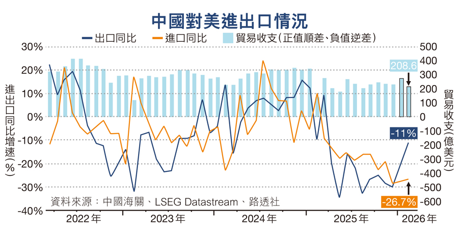 從主要貿易夥伴看,中國對東盟、歐盟保持強勁增長態勢,與美貿易則呈現雙位數下滑,對「一帶一路」國家和地區貿易表現突出,成為外貿增長的主要驅動力。首2個月,中國與東盟貿易總值為1.24萬億元人民幣,增長20.3%;與歐盟貿易總值為9,989.4億元人民幣,增長19.9%;與美國貿易總值為6,097.1億元人民幣,下降16.9%。同期,中國對「一帶一路」國家和地區合計進出口貿易4.02萬億元人民幣,增長20%。
