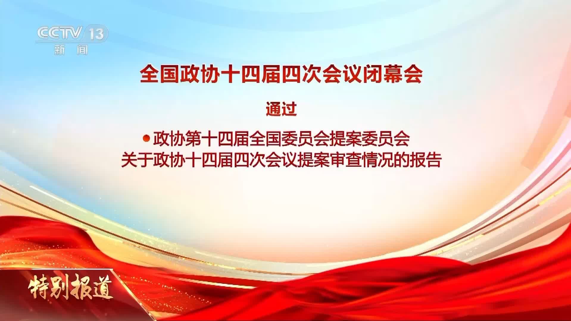 全國政協十四屆四次會議閉幕會通過了政協第十四屆全國委員會提案委員會關於政協十四屆四次會議提案審查情況的報告。