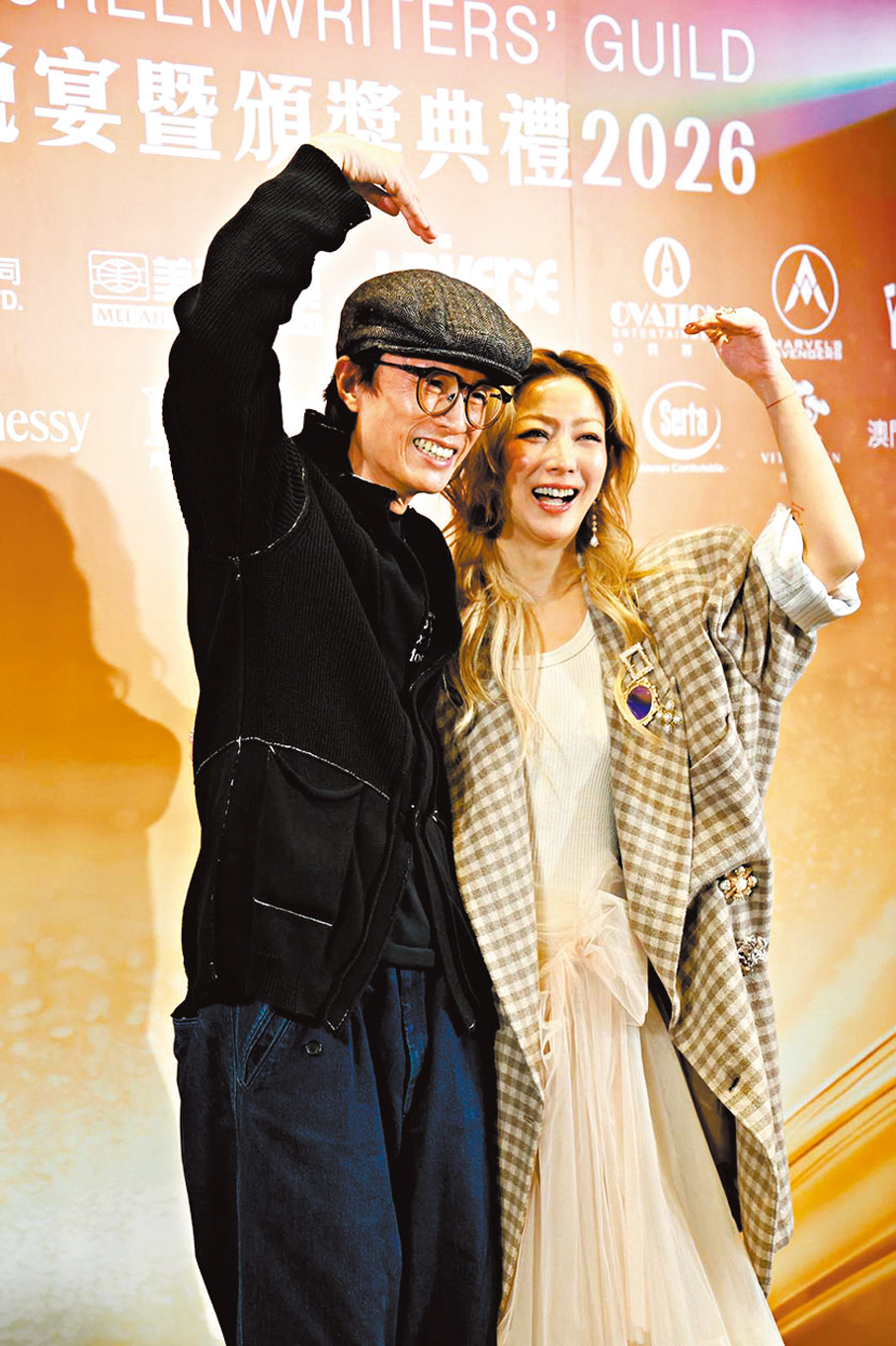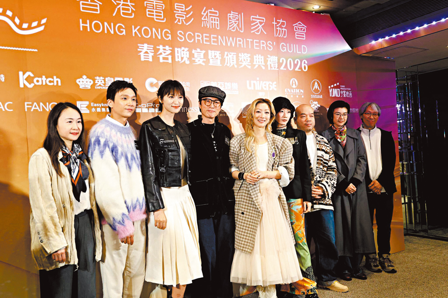 香港文匯報訊(記者 阿祖、子棠,攝影 孫嘉蔚)黃子華、鄭秀文(Sammi)、王丹妮、廖子妤等賀歲片《夜王》團隊前晚現身「香港電影編劇家協會春茗晚宴暨頒獎典禮2026」。對於電影在港澳累積票房衝破9,000萬元,子華更有望創造神話,獨霸香港影史港產片票房榜三甲;子華豪言若成真就為Sammi演唱會擔任嘉賓一起勁歌熱舞慶祝。