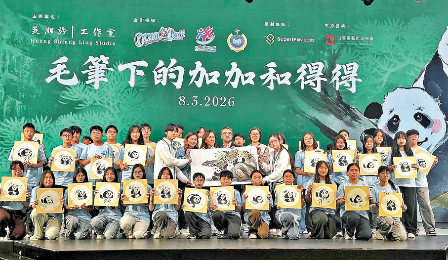 黃湘詅老師不單傳承父親的山水畫技法,也擅長畫熊貓,而且她畫的熊貓不單講究神似,還很注重熊貓的表情,也很喜歡用擬人的浪漫的手法,將熊貓畫得很多情,一對對深情相對,母親帶着兩隻寶寶流露出母愛。平日黃老師除了自己創作外也開班授徒,教學經驗豐富,有關方面今次真是找對人。學生們也很幸運,有專業畫家親自傳授技法,看到他們舉起作品拍照都很開心。