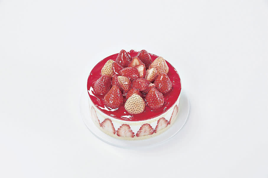 如果想和親朋好友分享,這款「特級士多啤梨x淡雪樂園」(售價$330)當然不能錯過。原個蛋糕除了保留頂層雙色士多啤梨的華麗裝飾,以及中層豐富的特級士多啤梨果肉外,更在中層額外融入幼滑濃郁的士多啤梨吉士打忌廉。吉士的蛋奶香完美襯托出士多啤梨的清新,每一口的奶香與果香都更加醇厚飽滿,口感層層遞進,是聚會分享春日甜蜜的最佳選擇。