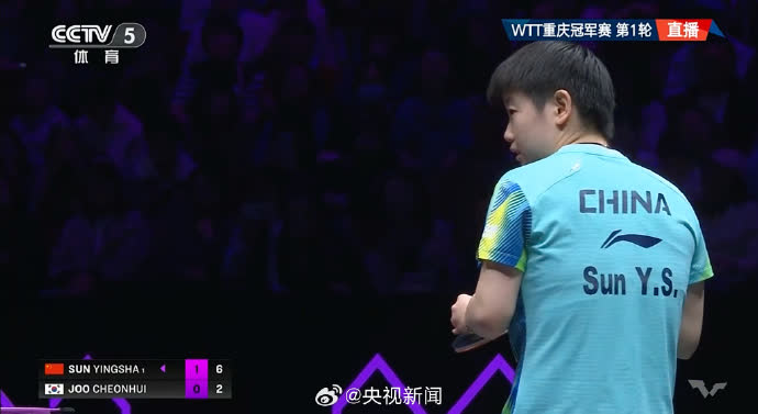 2026WTT重慶冠軍賽女單1/16決賽,孫穎莎3-0(11-5、13-11、11-8)戰勝韓國選手朱芊曦,取得開門紅,晉級16強。