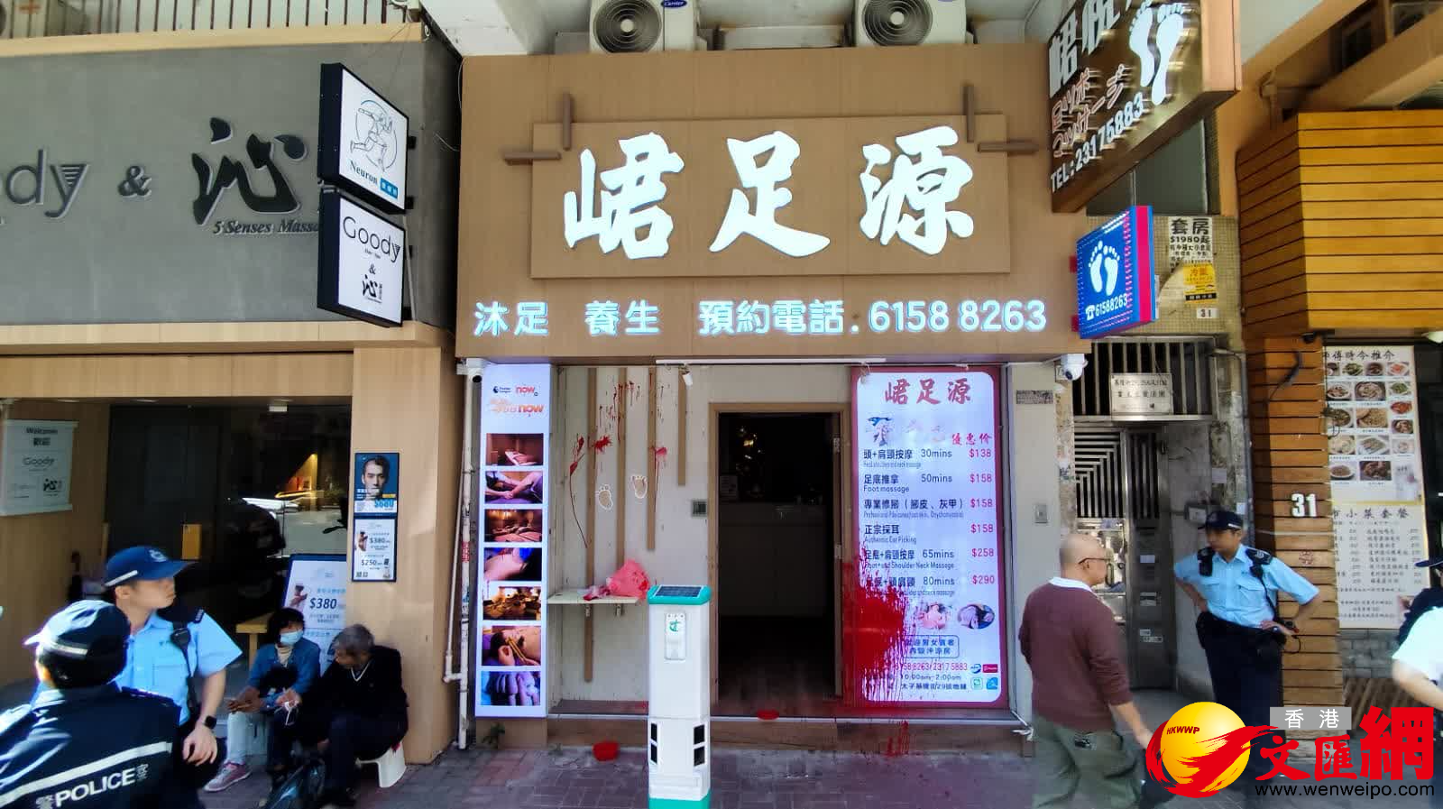 香港文匯報訊(記者 蕭景源)今日(12日)上午9時34分,警方接獲太子基隆街29號地下一間足浴店職員報案,指店舖遭人淋潑紅色油漆。