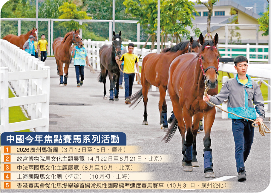 香港文匯報訊(記者 敖敏輝 廣州報道)今年10月31日,香港賽馬會從化馬場將舉辦常規性國際標準速度賽馬賽事。與香港的賽馬場不同,由於從化馬場不設博彩,小孩亦可隨同家人北上欣賞精彩的馬術賽事。據預計,從化馬場將吸引大量內地、香港乃至海外的馬術運動愛好者前往廣州觀賽。
