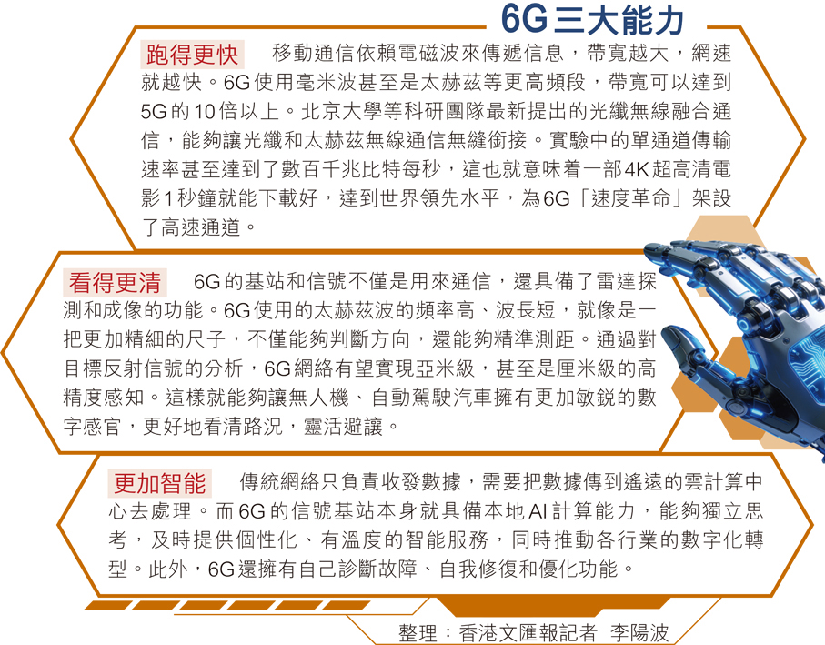 多位全國人大代表和政協委員及業內專家提出,對普通消費者而言,6G不僅僅是讓手機網速快一點,更是構建一個連接現實與虛擬,溝通人類與萬物的智能立體空間,讓AI真正「下沉到身邊」,智能互聯深度嵌入百姓生活。中國擁有領先的信息通信與AI產業生態,具備技術驗證與規模化應用的條件,隨着6G從技術試驗走向產業培育,相關新賽道將加速形成。●文/圖:香港文匯報記者 李陽波 兩會報道