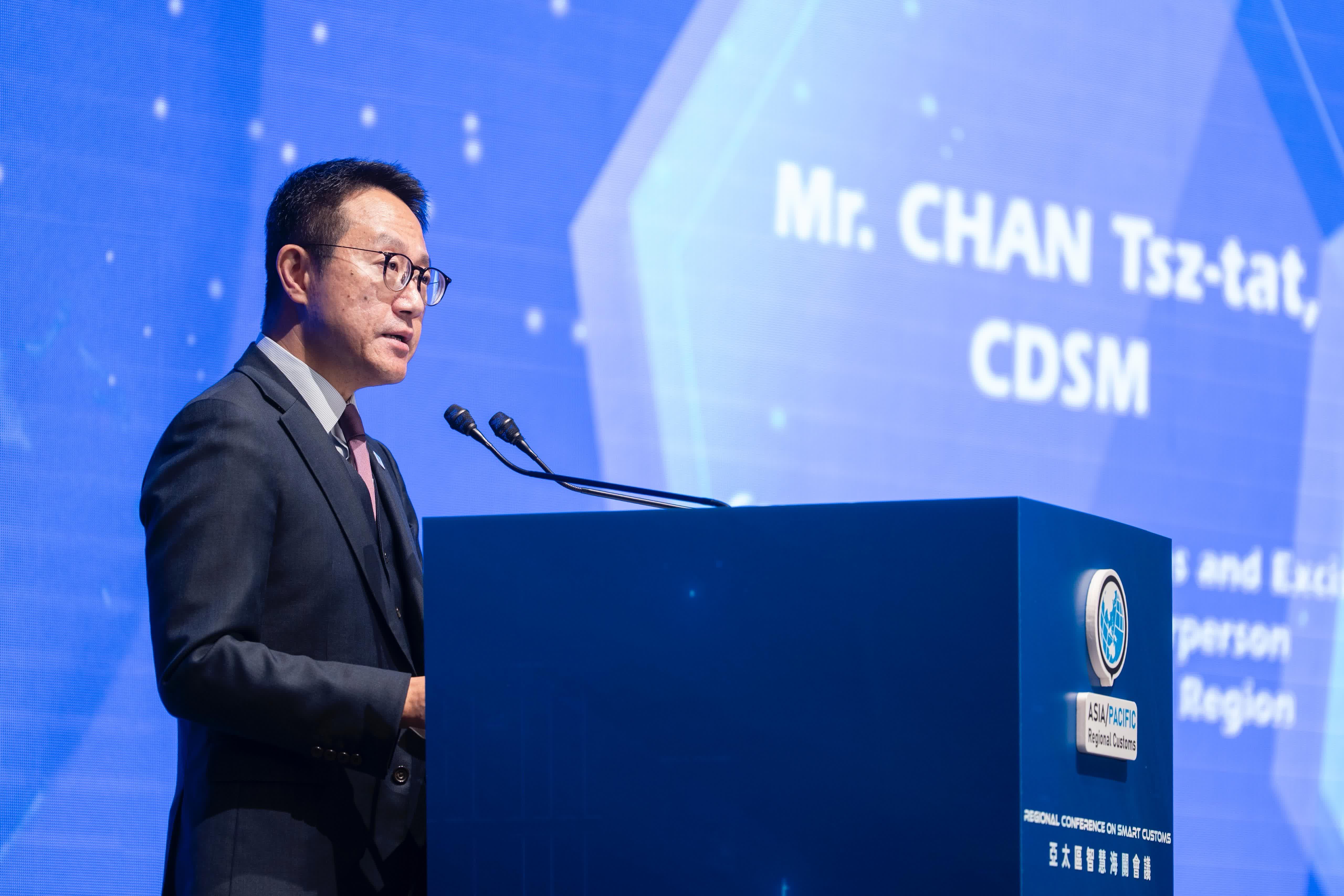 陳子達以世界海關組織亞太區副主席身份致歡迎辭時指,會議旨在加強夥伴關係與合作,共同推動亞太區智慧海關的發展。他介紹了香港海關在人工智能、區塊鏈及大數據方面的應用成果,並強調智慧海關的成功有賴於互信、夥伴關係與緊密協作。香港海關將繼續推動清關數碼化改革,強化全球貿易聯通,並建設更具韌性的供應鏈。