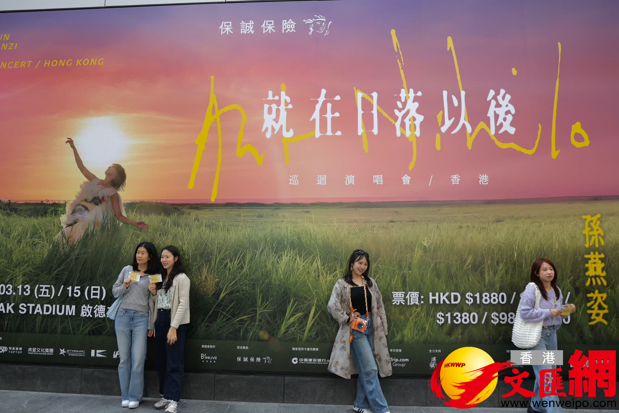不少歌迷早於開場前已抵達場館,在周邊應援打卡位拍照留念,秩序井然。更有粉絲手持紙牌,表示已喜歡孫燕姿15年,認真長情。