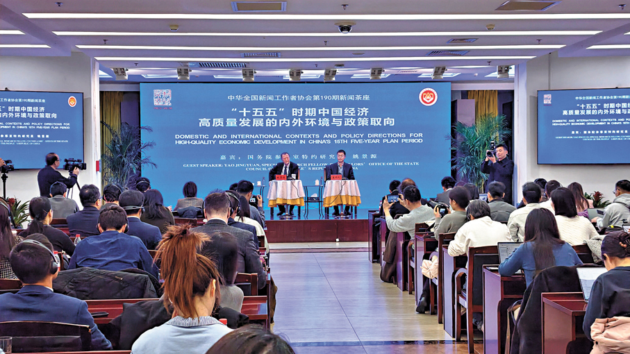 香港文匯報訊(記者 朱燁 北京報道)全國兩會剛剛落下帷幕,中國記協於13日舉辦新聞茶座,邀請國務院參事室特約研究員姚景源圍繞「『十五五』時期中國經濟高質量發展的內外環境與政策取向」主題與境內外記者交流並回答提問。「規劃應該是一張宏偉的藍圖,全國兩會閉幕之後,我們的任務就是讓這張宏偉的藍圖變為現實。」姚景源認為,「十五五」規劃藍圖變為現實的核心,就是要推動中國經濟高質量發展。