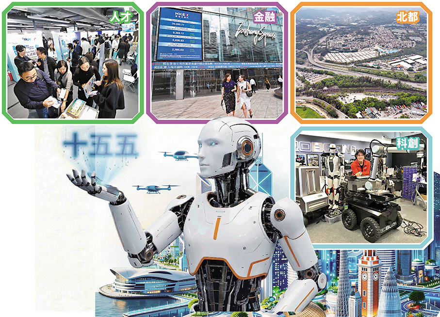 「十五五」規劃綱要第五十九章明確指出,堅定不移貫徹「一國兩制」、「港人治港」、「澳人治澳」、高度自治方針,落實「愛國者治港」、「愛國者治澳」原則,提升港澳依法治理效能,促進港澳經濟社會發展,發揮港澳背靠祖國、聯通世界獨特優勢和重要作用。篇章第一節列舉多個例子,支持港澳鞏固提升競爭優勢,例如支持香港鞏固提升國際金融、航運、貿易中心和國際航空樞紐地位等,同時亦提及加快北部都會區建設;亦提及支持港澳打造國際高端人才集聚高地。