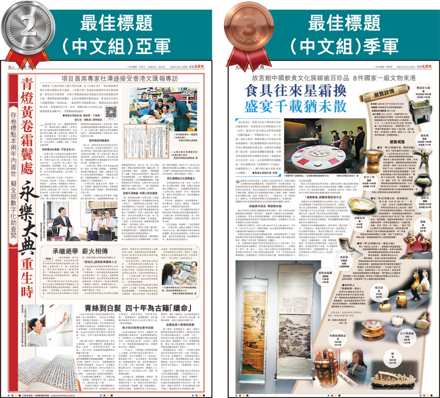 以「青燈黃卷霜鬢處 永樂大典重生時」獲得最佳標題(中文)亞軍的李海月表示,在新聞走向電子化的時代,能以有限字句記錄並傳播這份守護典籍的心力,讓更多人看見其中的意義與光亮,於她而言亦是一件難得而珍貴的事。