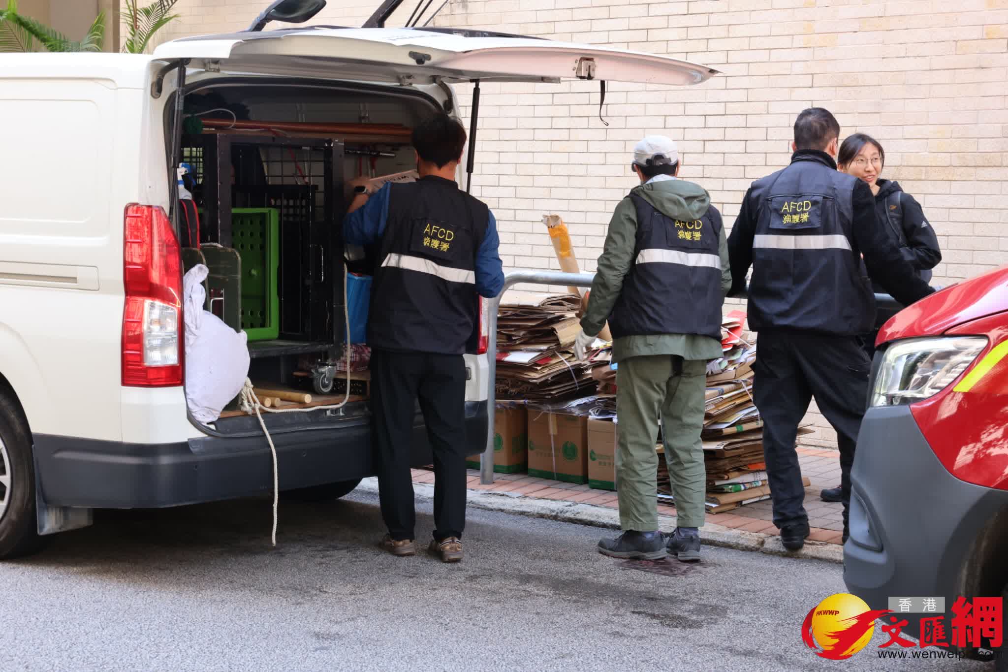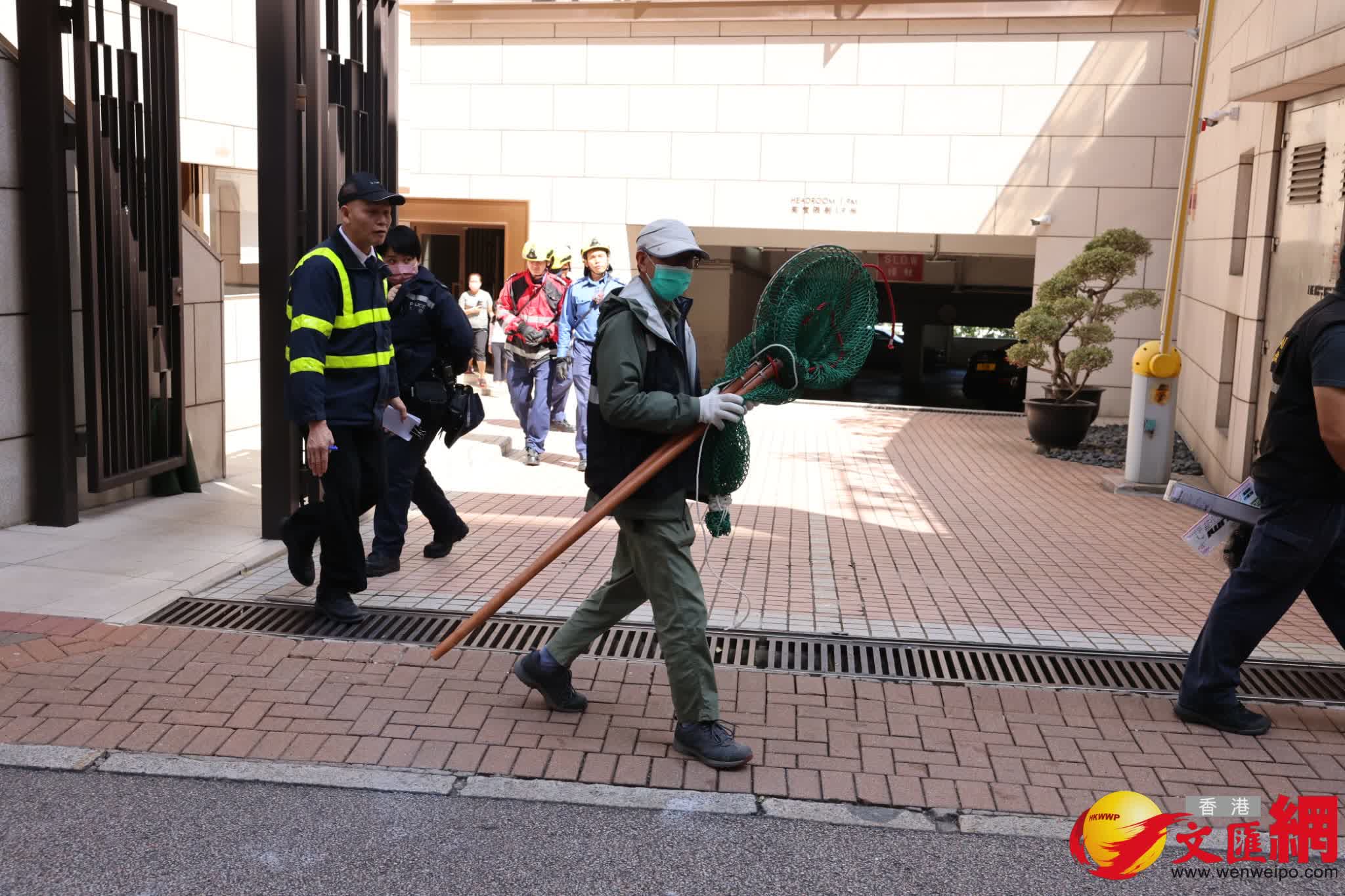 香港文匯報訊(記者 蕭景源)今日(14日)早上9時許,半山麥當勞道威豪閣9樓一單位外牆冷氣機頂出現一隻果子狸,管理處職員報警求助。警方及消防員到場調查,初步果子狸疑似受傷,遂聯絡漁護署派員協助處理。漁護署人員帶備繩網到場展開圍捕,其間果子狸受驚爬落平台逃去無蹤,警方、消防及漁護署人員收隊離去。