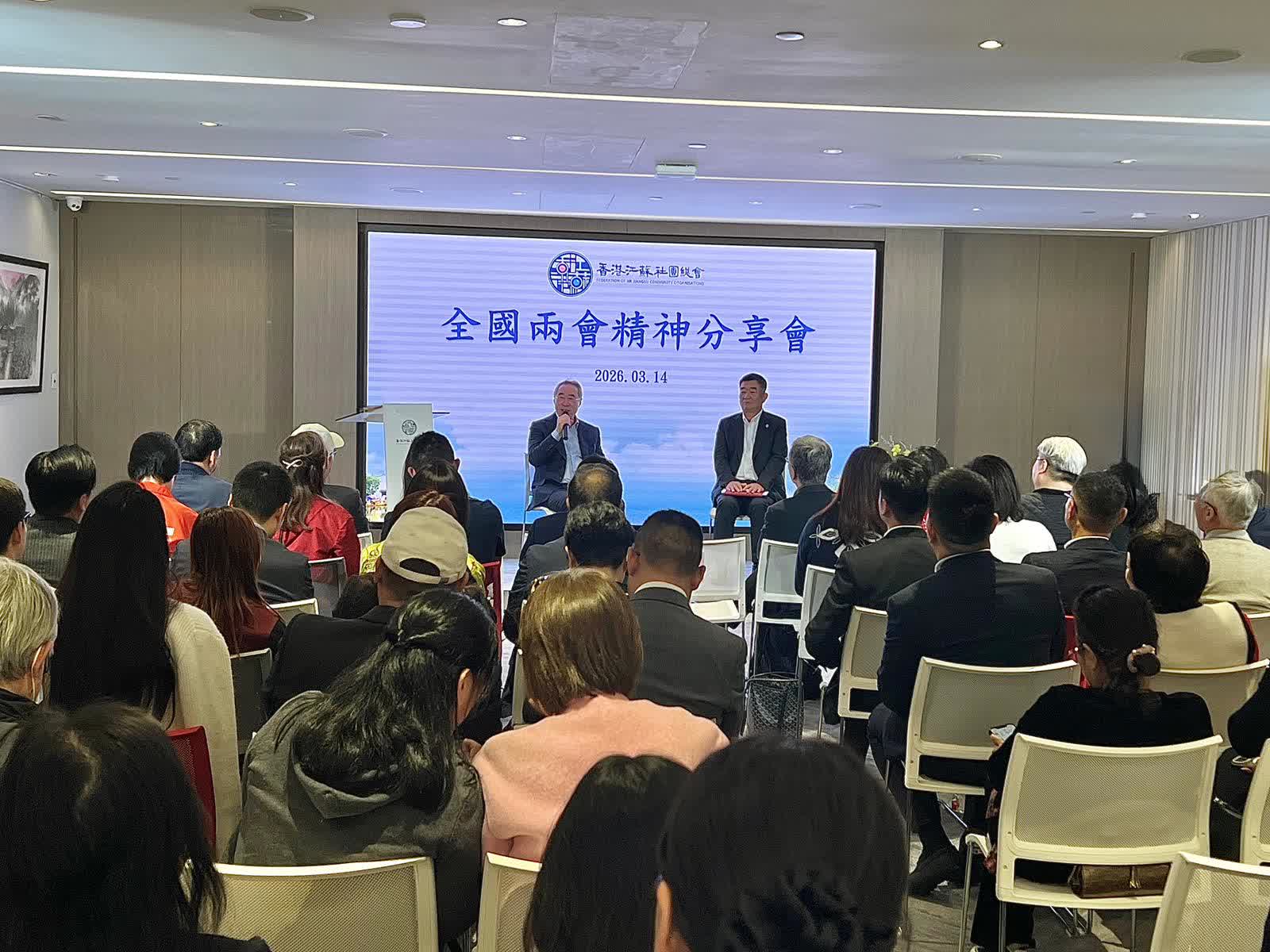 兩會會議前日勝利閉幕,香港江蘇社團總會今日馬上舉行2026全國兩會精神分享會,超過100名香港江蘇社團總會成員出席。