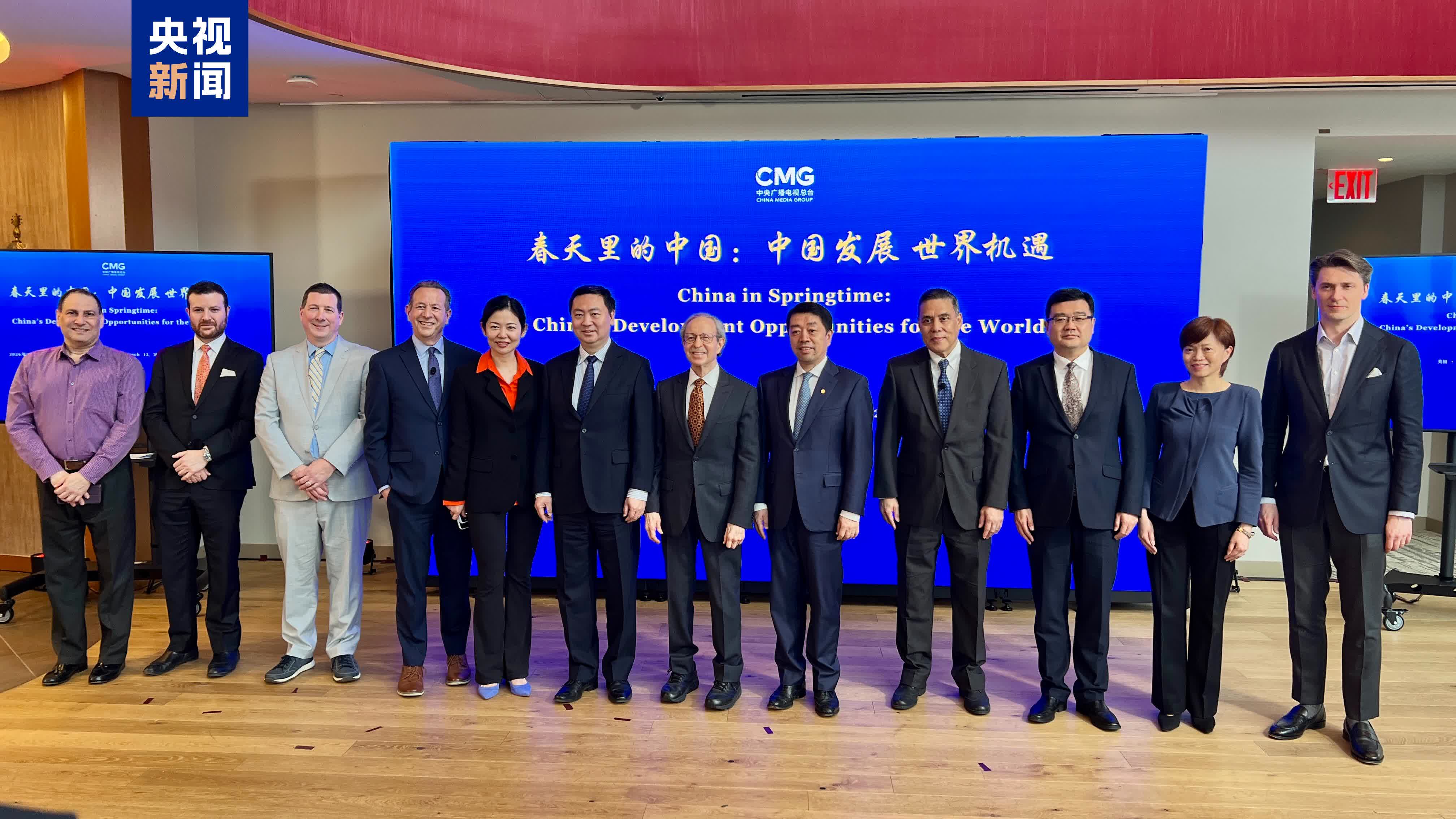 當地時間3月13日,由中國中央廣播電視總台主辦的「春天裏的中國:中國發展 世界機遇」全球對話會美國專場在紐約舉行。中宣部副部長、中央廣播電視總台台長慎海雄,中國駐美國大使謝鋒,美中貿易全國委員會會長譚森,美國哥倫比亞大學教授傑弗里·薩克斯作視頻致辭。中國駐紐約總領事陳立、美國庫恩基金會主席羅伯特·庫恩、美國中國總商會會長胡威出席活動並致辭。中美商界、學界、媒體界等近百名嘉賓參加活動。「春天裏的中國:中國發展 世界機遇」全球對話會系列活動自此啟動。