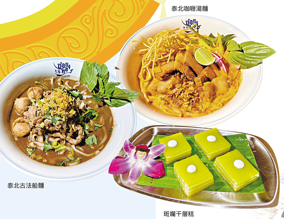 餐廳主打招牌「泰北古法船麵」及「泰北咖喱湯麵」,湯底濃郁香辣、配料新鮮豐富,重現泰國小巷的經典滋味。泰北古法船麵採用每日熬煮達6小時的濃郁湯底,以牛骨等16種材料熬製而成,並搭配以羅望子、椰糖及乾辣椒熬煮的秘製手工辣汁。食客可按喜好選擇微辣、小辣、中辣或大辣四種辣度,並可搭配豬肉、牛肉或和牛配料,亦可選用金邊粉,品味正宗泰式滋味。而泰北咖哩湯麵則可搭配日本和牛或秘製泰式燒肉享用。主廚拒絕使用現成咖喱膏,而是以新鮮南薑、香茅、黃薑及多款香料每日即炒,並獨家加入椰青碎,為醬汁注入天然清甜與椰香。配上每日現炸的香脆燒肉或油花甘美的A4和牛,每一口都是濃香與肉感的交融。