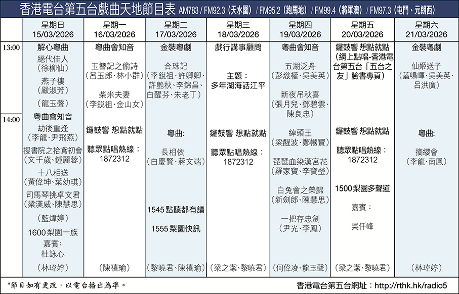 香港電台第五台戲曲天地節目表