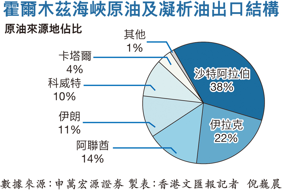 申萬宏源證券的數據指,截至去年上半年,全球26%的石油海運、20%的LNG貿易經霍爾木茲海峽運出。其中,89%的石油和86%的LNG主要運往亞洲地區,涉及中國、印度、韓國、日本等。同時,航道受阻對沙特、伊拉克、阿聯酋、伊朗、科威特五國的單日原油出口衝擊分別達560萬桶、330萬桶、160萬桶、160萬桶和150萬桶。