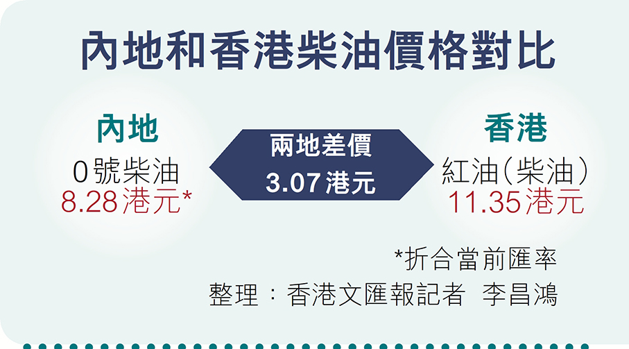 香港文匯報訊(記者 李昌鴻 深圳報道)從事供港菜運輸業務的香港司機黃偉文表示,因深圳0號柴油只要7.3元人民幣一升,香港很多加油站,要11元至13港元一升,折合匯率後,內地為9.68港元至11.44港元,較香港便宜約2.38元人民幣至4.14港元,因此,他最近經常在內地加油,這樣可以節省不少成本。幸好之前把自己的跨境貨車轉手了,現在給人打工駕駛供港菜貨車,一個月有固定2萬至3萬港元的收入,否則高油價必定影響個體戶司機收入,估計一個月收入減少6,000港元到10,000港元。他感嘆,高油價背景下,跨境司機謀生不容易。