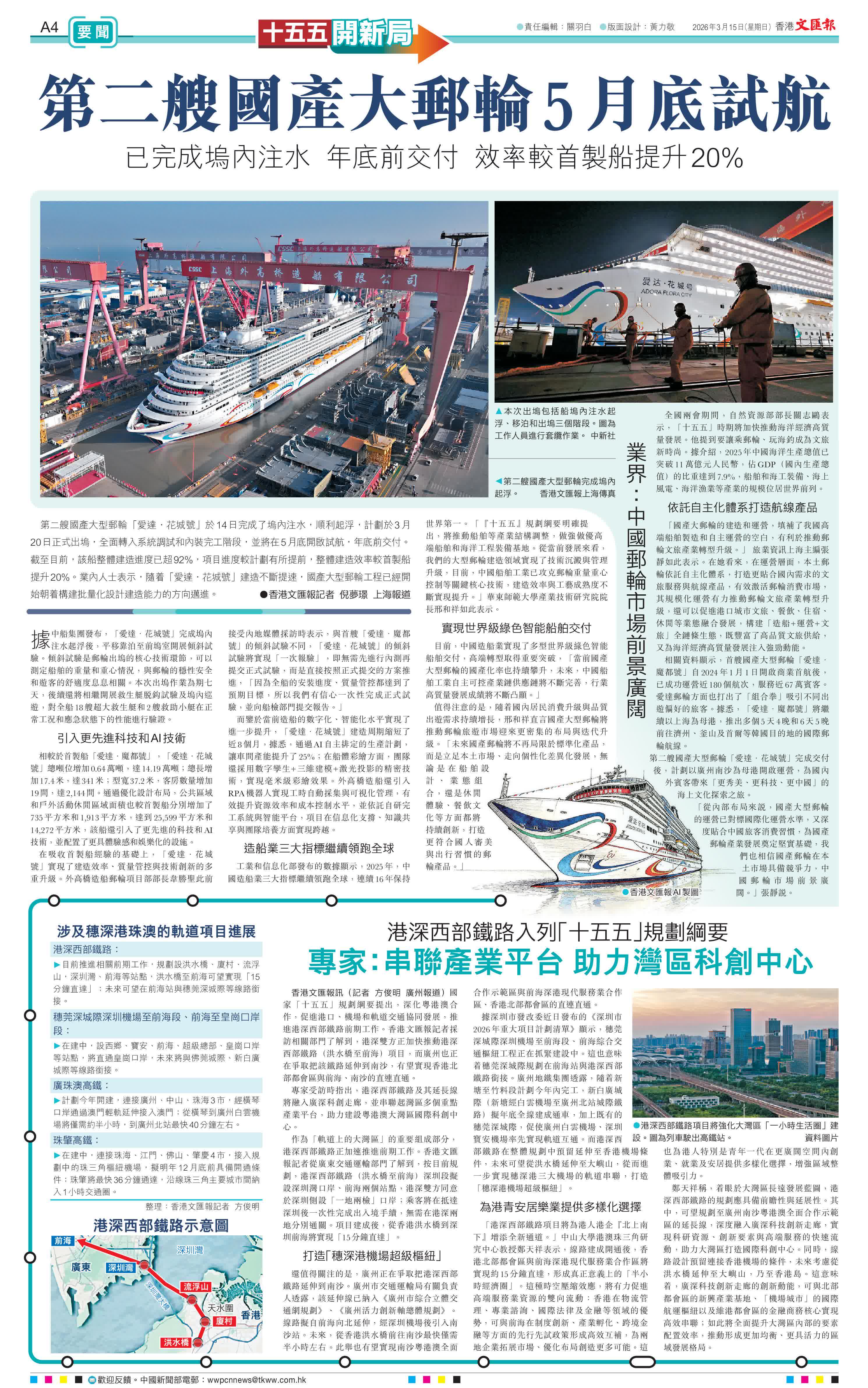 工業和信息化部發布的數據顯示,2025年,中國造船業三大指標繼續領跑全球,連續16年保持世界第一。「『十五五』規劃綱要明確提出,將推動船舶等產業結構調整,做強做優高端船舶和海洋工程裝備基地。從當前發展來看,我們的大型郵輪建造領域實現了技術沉澱與管理升級,目前,中國船舶工業已攻克郵輪重量重心控制等關鍵核心技術,建造效率與工藝成熟度不斷實現提升。」華東師範大學產業技術研究院院長邢和祥如此表示。