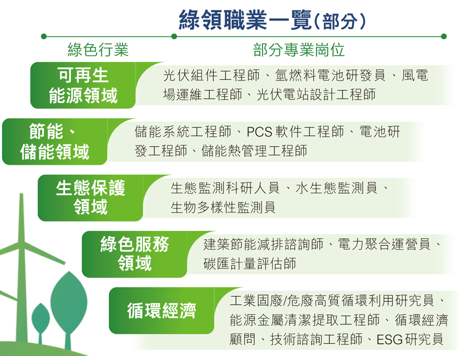 綠領,是受雙碳戰略影響而崛起的新興職業,特指深耕環保治理、清潔能源、綠色技術研發等領域,兼具藍領實操能力與白領系統思維,更懷揣「用技術護生態」社會責任感的複合型人才。根據《中華人民共和國職業分類大典(2022年版)》,目前共有134個綠色職業,覆蓋了節能環保、清潔能源、綠色服務等多個領域。孫明表示,「綠領」這一稱呼,相比於「白領」「藍領」更增加了一份社會責任感。
