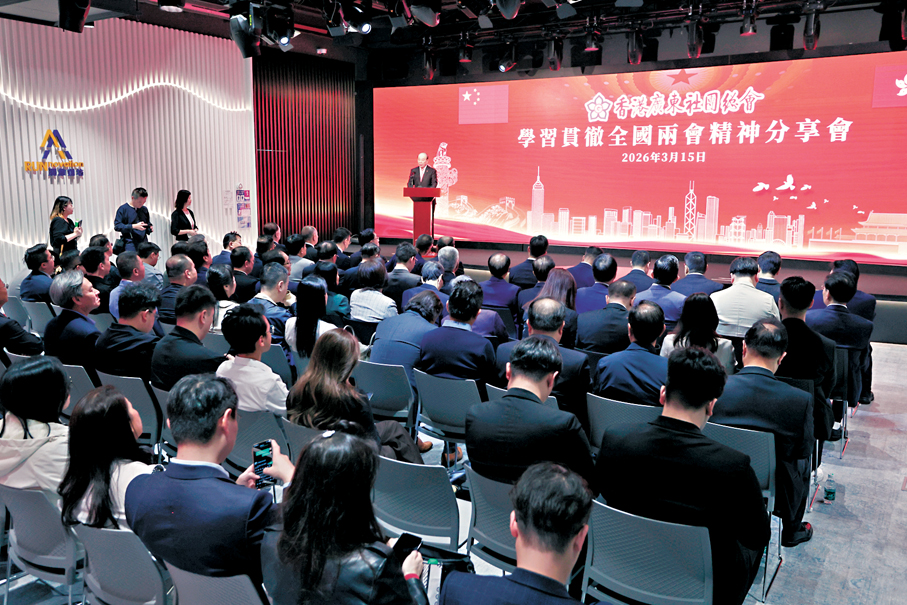 香港文匯報訊(記者 黃子龍)香港廣東社團總會昨日在灣仔潤維創坊舉行學習貫徹全國兩會精神分享會,多位香港廣東社團總會領導出席,共同探討國家「十五五」規劃與香港未來發展的新機遇。他們呼籲大家要繼續秉持愛國愛港愛家鄉的宗旨,堅定擁護「一國兩制」方針,堅定支持特區政府依法施政,團結一心,攜手奮進,為維護香港長期繁榮穩定,為強國建設、民族復興作出貢獻。