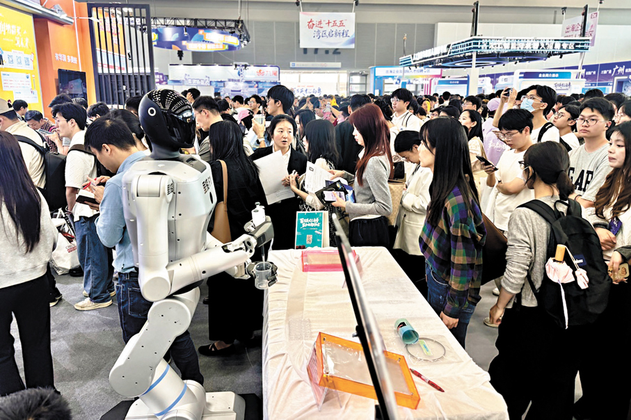 面對市場需求的深刻變化,內地高校正主動調整人才培養方向。成都大學專門組團來粵參加本次招聘會,學生工作部負責人熊程介紹,「十五五」期間,學校將緊扣國家和區域產業發展需求,重點培養「人工智能+」交叉複合型人才,打造貼合現代產業的交叉學科方向;新建3至5個現代產業學院,聯合龍頭企業共建跨學科核心課程與教材,深化政校企協同育人;搭建跨學科實踐平台,把企業真實項目融入教學過程。同時,學校將緊密對接區域產業體系,動態優化專業布局,對就業適配度不高的專業實行分類調整,確保人才培養與市場需求同頻共振。