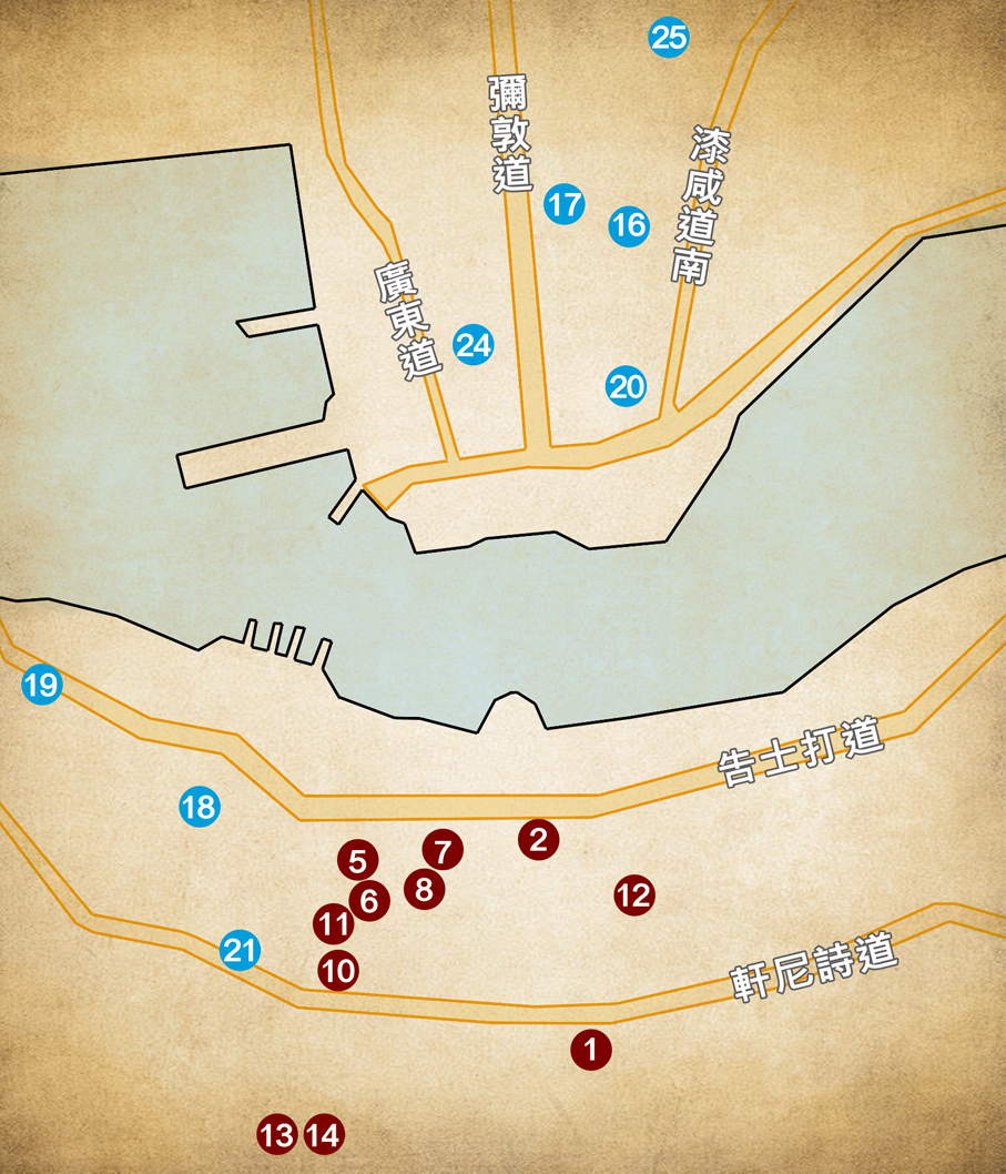 根據鄺智文提供的航空圖片定位信息,香港文匯報新聞調查部對比現時地圖及現場走訪發現,第二食堂位於軒尼詩道華寧大廈附近;第三食堂位於駱克道中匯大廈附近;第一食堂則因地址僅被標註「東住吉通」,經對照日佔時期香港街道地名更名公示,僅能大致鎖定其於現告士打道一帶,相信距上述其他「慰安設施」不遠。