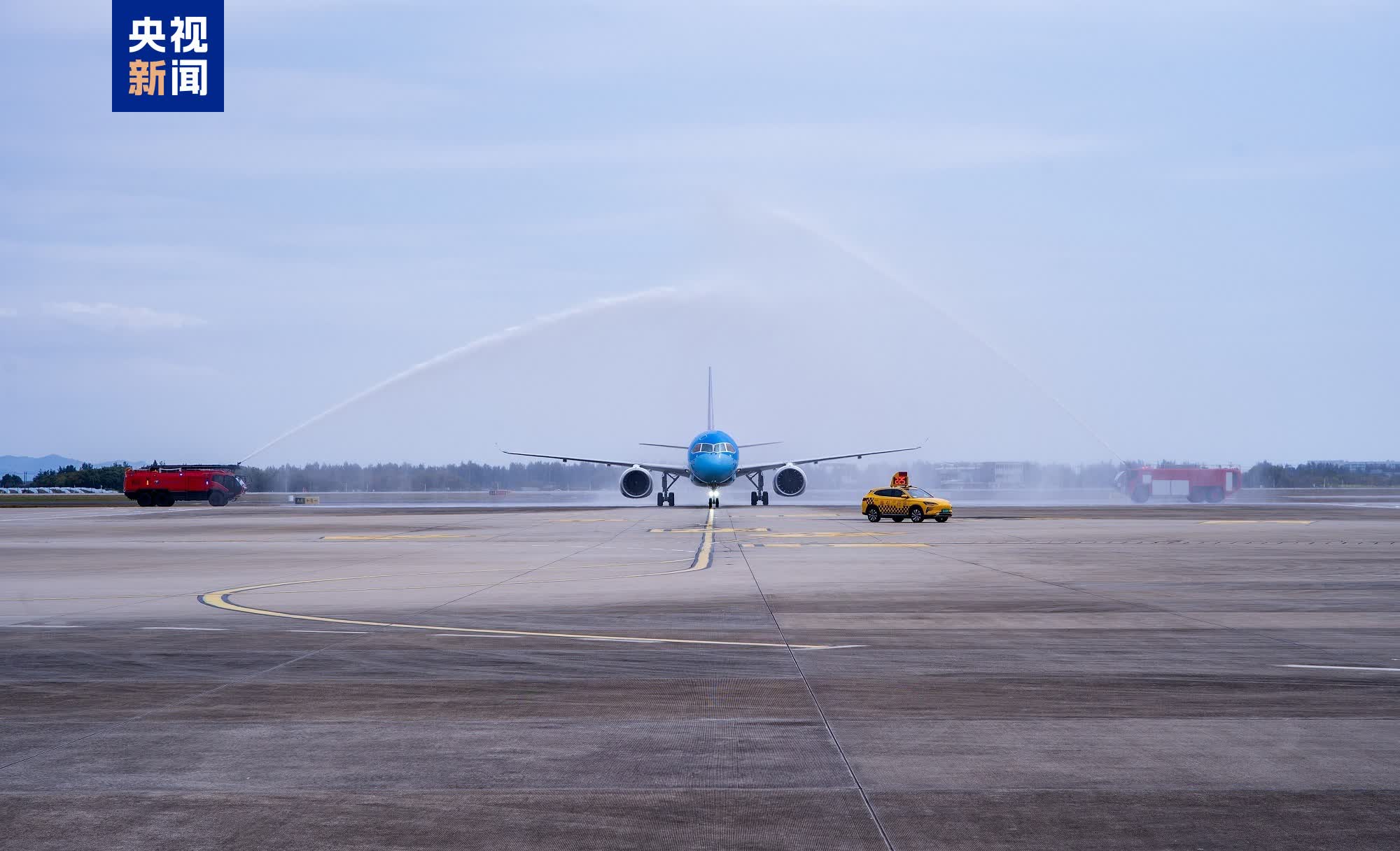 12時5分左右,飛機平穩降落在溫州龍灣國際機場,緩緩穿過象徵民航最高禮儀的「水門」,標誌着國產大飛機C919在這條新航線上的常態化運營正式拉開序幕,接下來計劃每日執飛廣州至溫州兩個往返航班。