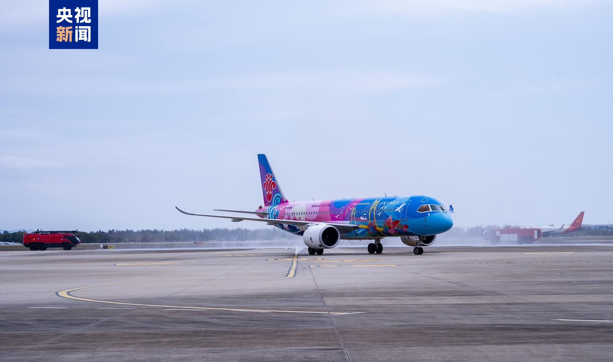 記者3月16日從南航了解到,16日上午10時44分左右,南航國產大飛機C919「大美灣區號」彩繪機從廣州白雲國際機場起飛,正式開始執飛廣州往返溫州新航線。
